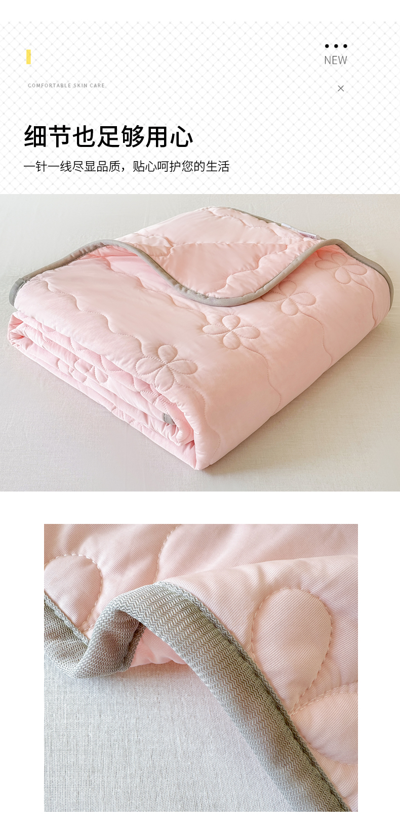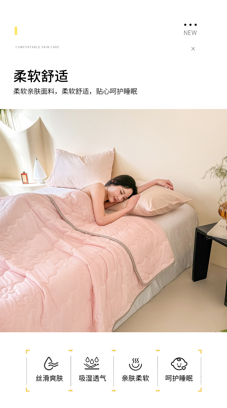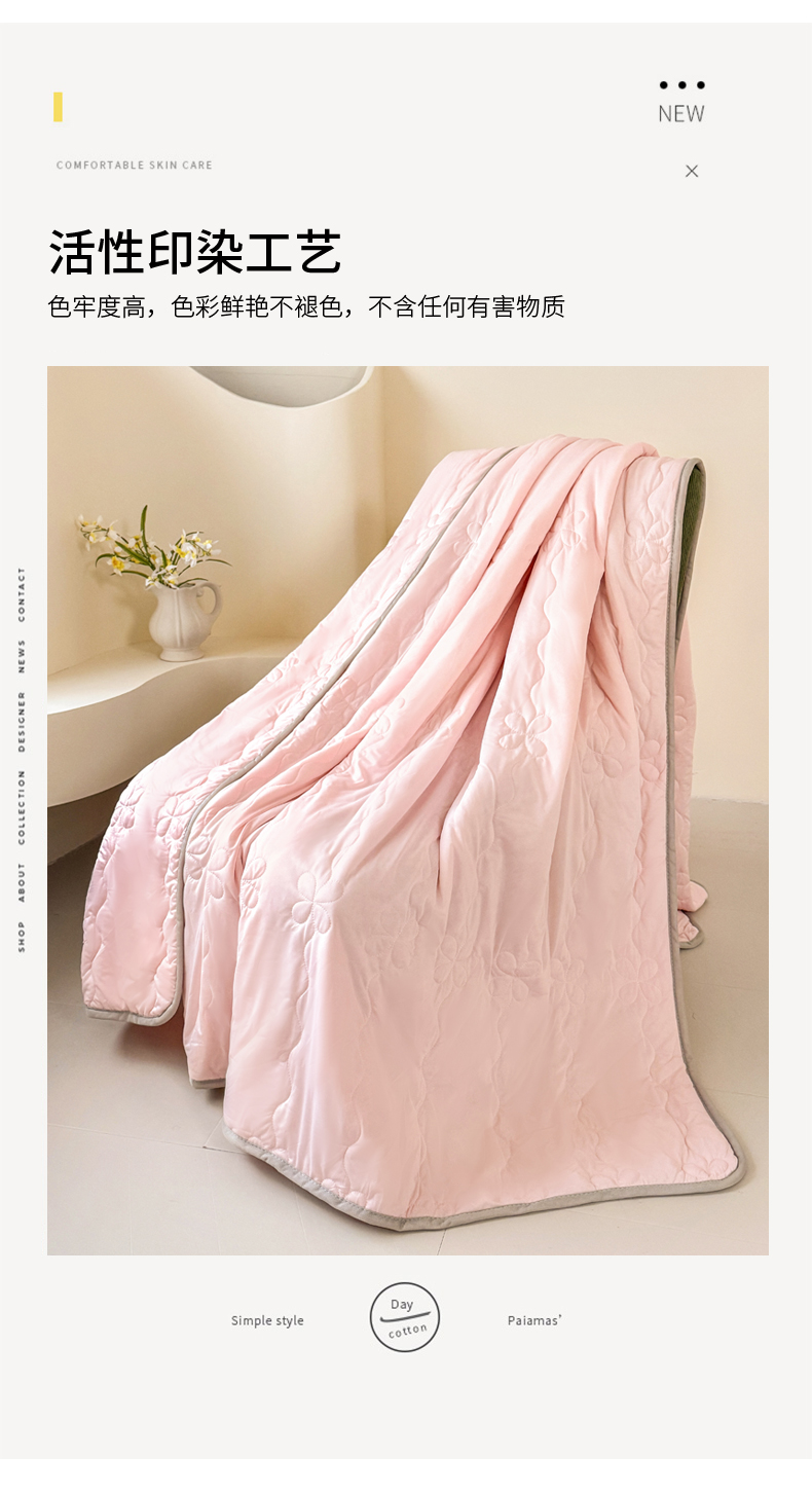 商品名称:丹本家纺 2026新款凉感夏被空调被凉席空调席冰丝席纯色床裙乳胶席三件套四件套菱形格 夏被-粉色