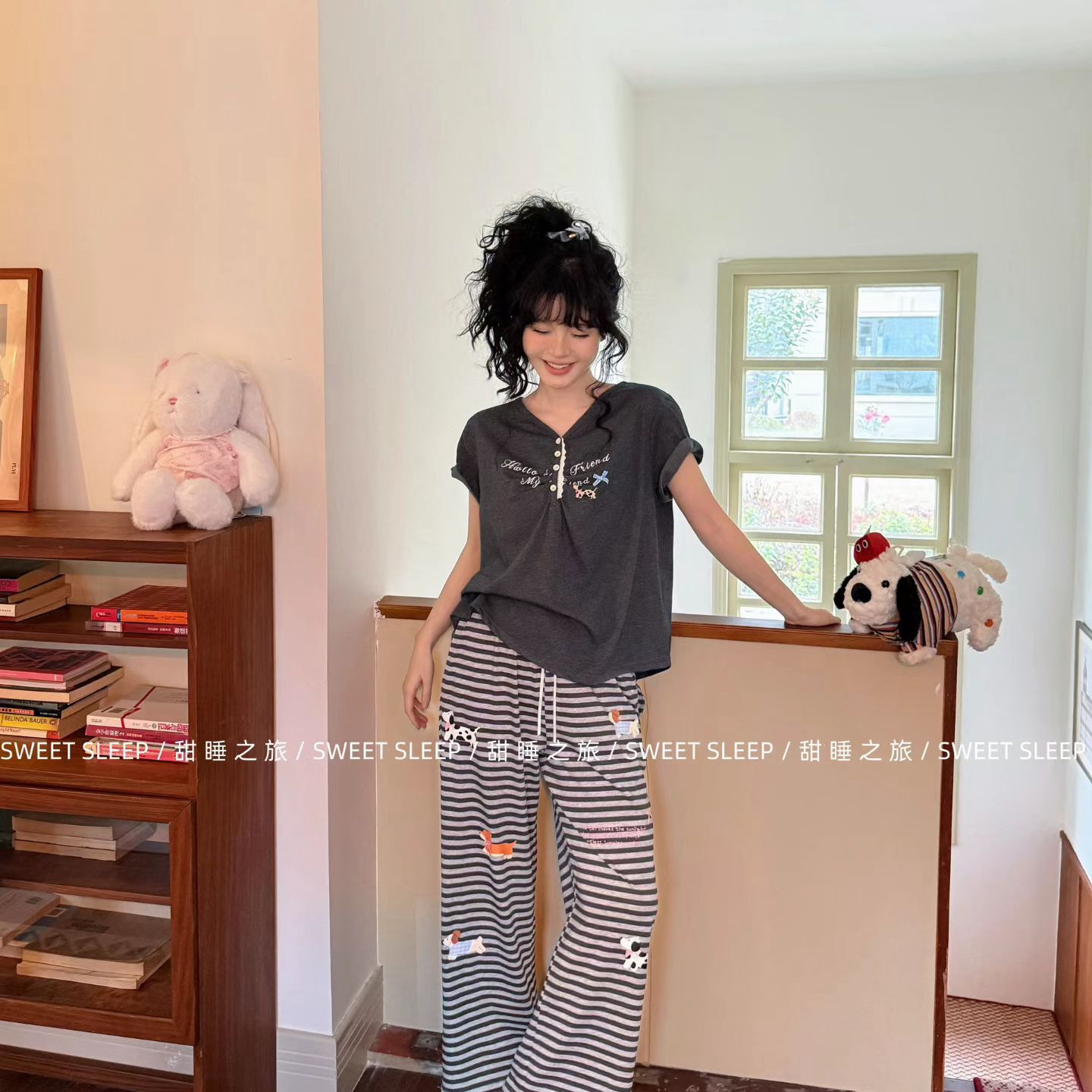 当前位置: 91家纺网 > 商品网购 > 居家日用 > 睡衣/家居服套装 > (总)妍景家居生活馆 2026新款莱赛尔冰丝棉小熊家-小腊肠家居服