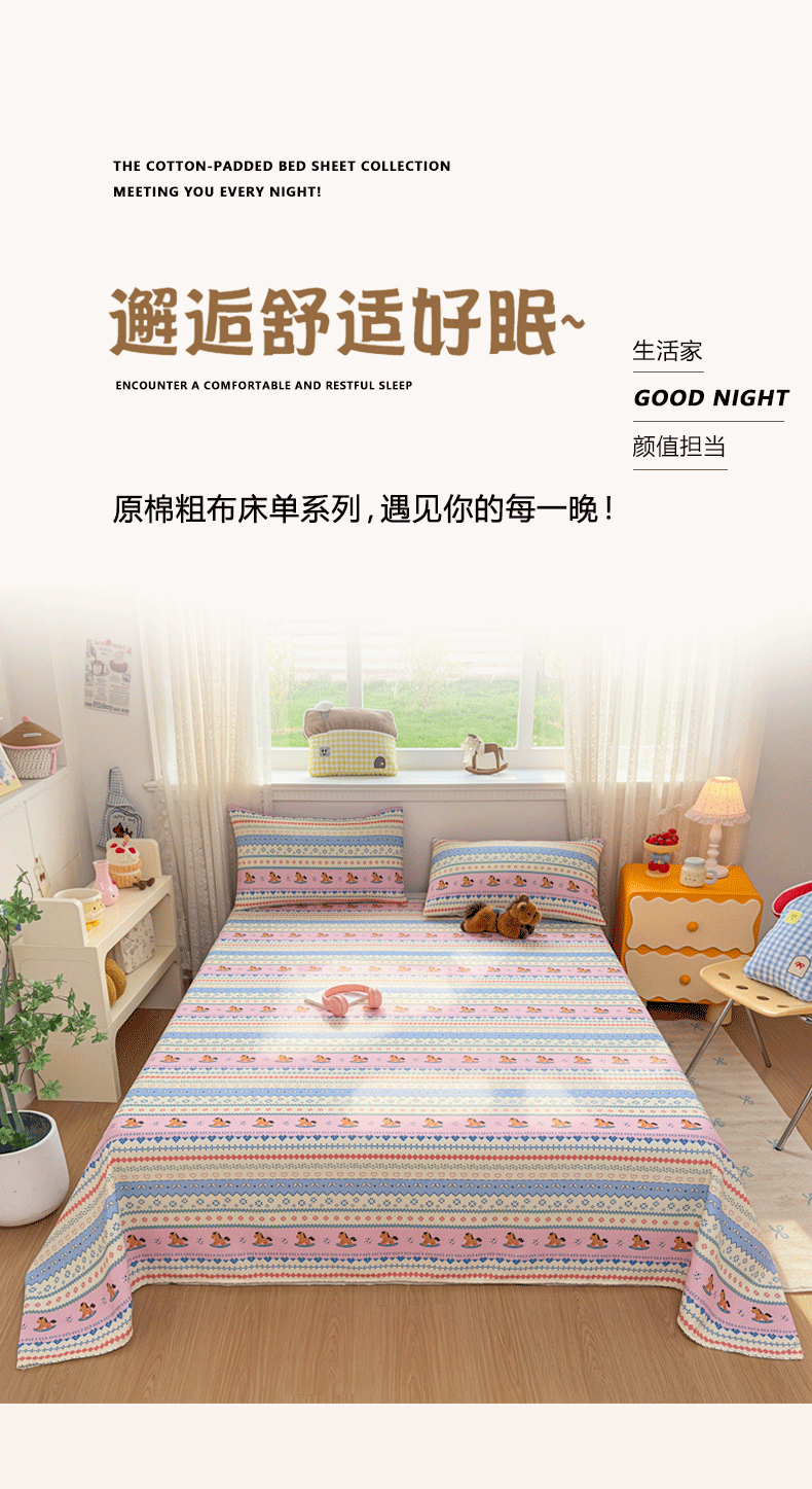 (总)爱彼家纺 2026新款热卖系列老粗布床单床单三件套凉席,小小兔,白朵花园,北望,彩虹波点,灿烂时光,草莓星芒,粉玫密语,粉兔花事,橄榄绿,格子粉,格子黄,格子灰,格子咖,格子蓝,格子绿,格子紫,花清舞绿,花田小狮,花条,桔灰细条,锦绣花舞,卡其,蓝白条,蓝小格,林间小兔,绿果花香,暖阳-天蓝格,棋盘格,青花江水,素林织棉,向往蓝条,向往米兰条,向往条绿,新清嫩绿,叶影,元气小象,竹小熊,紫罗,组合图仅展示