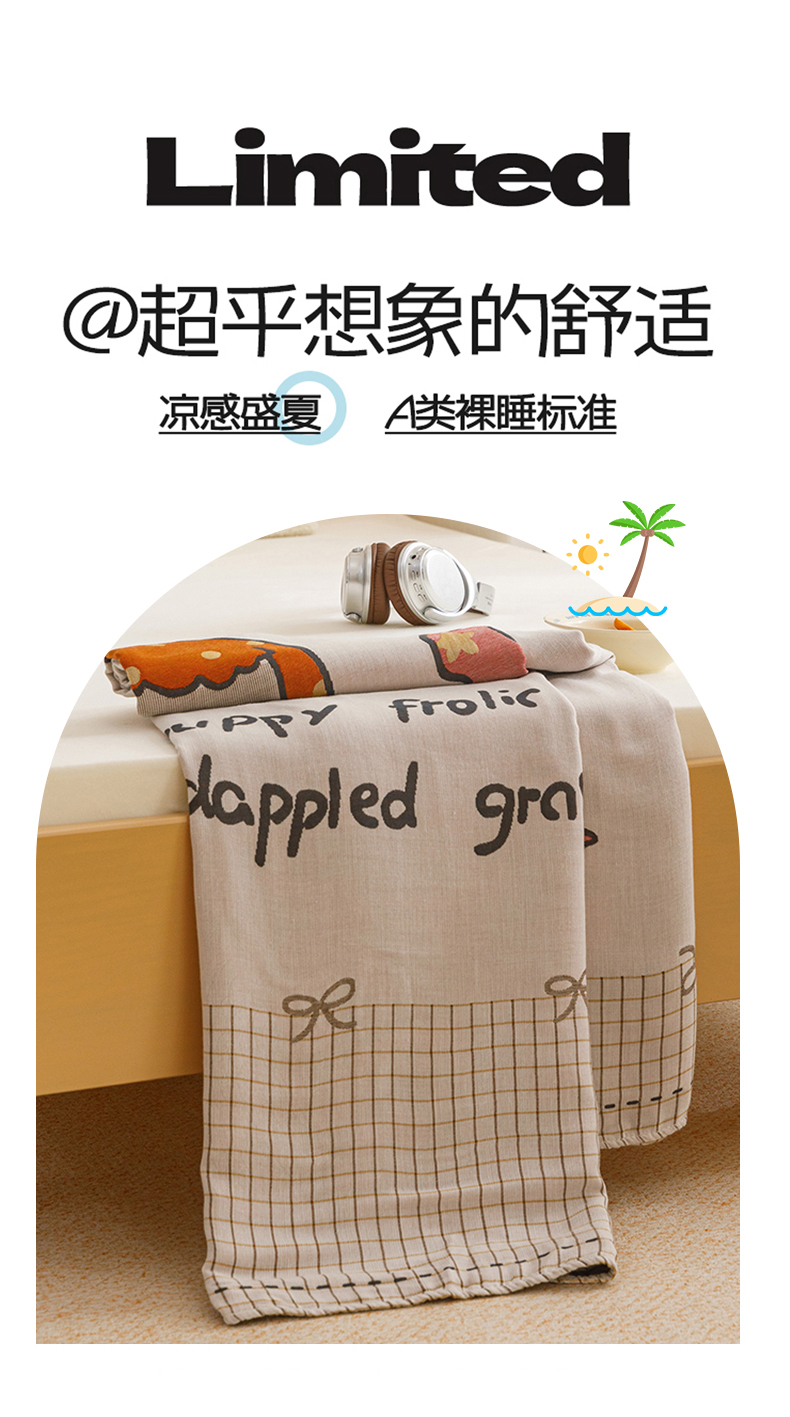 悦然毛巾被 2026春夏新款三层竹纤维冷感毯休闲儿童毯成人毛巾被 小时光