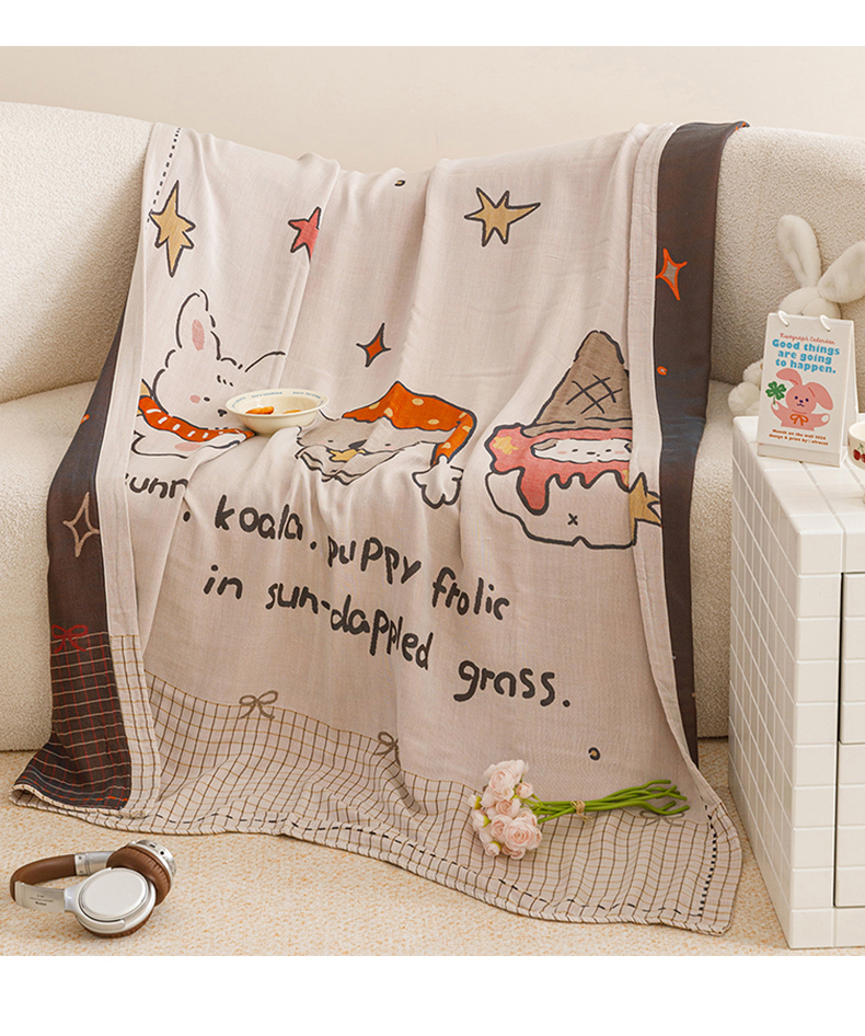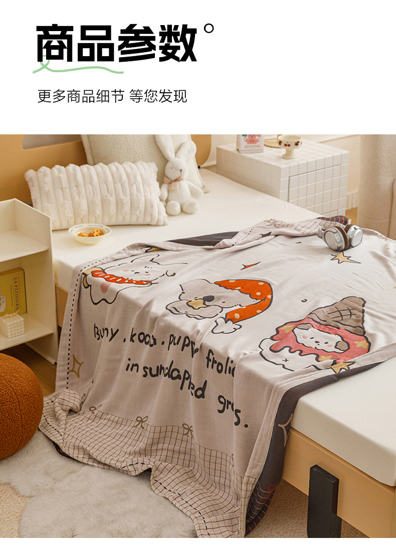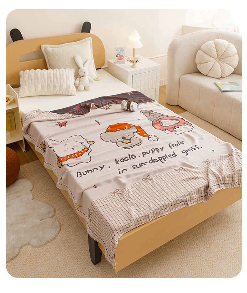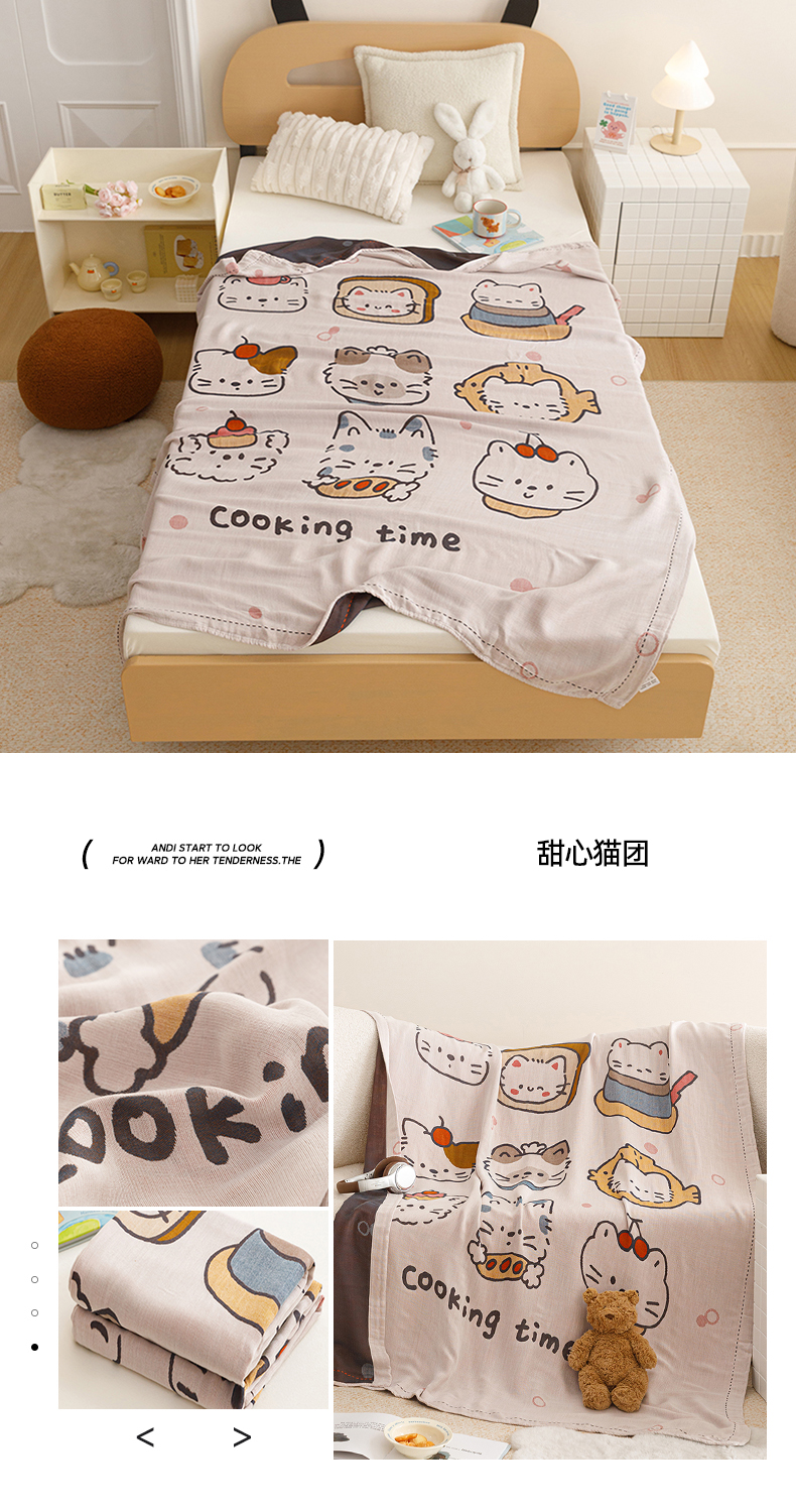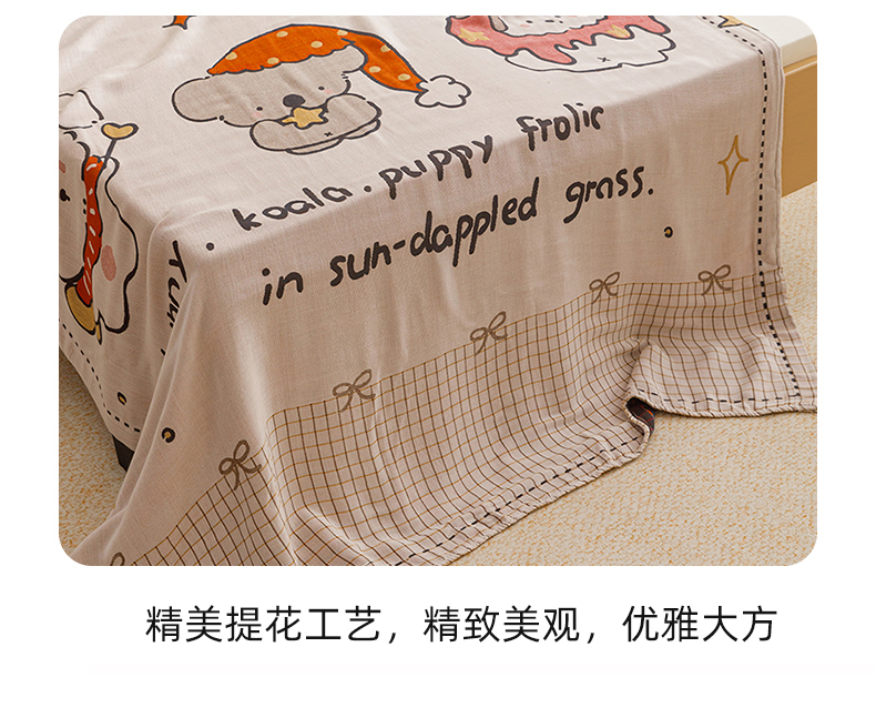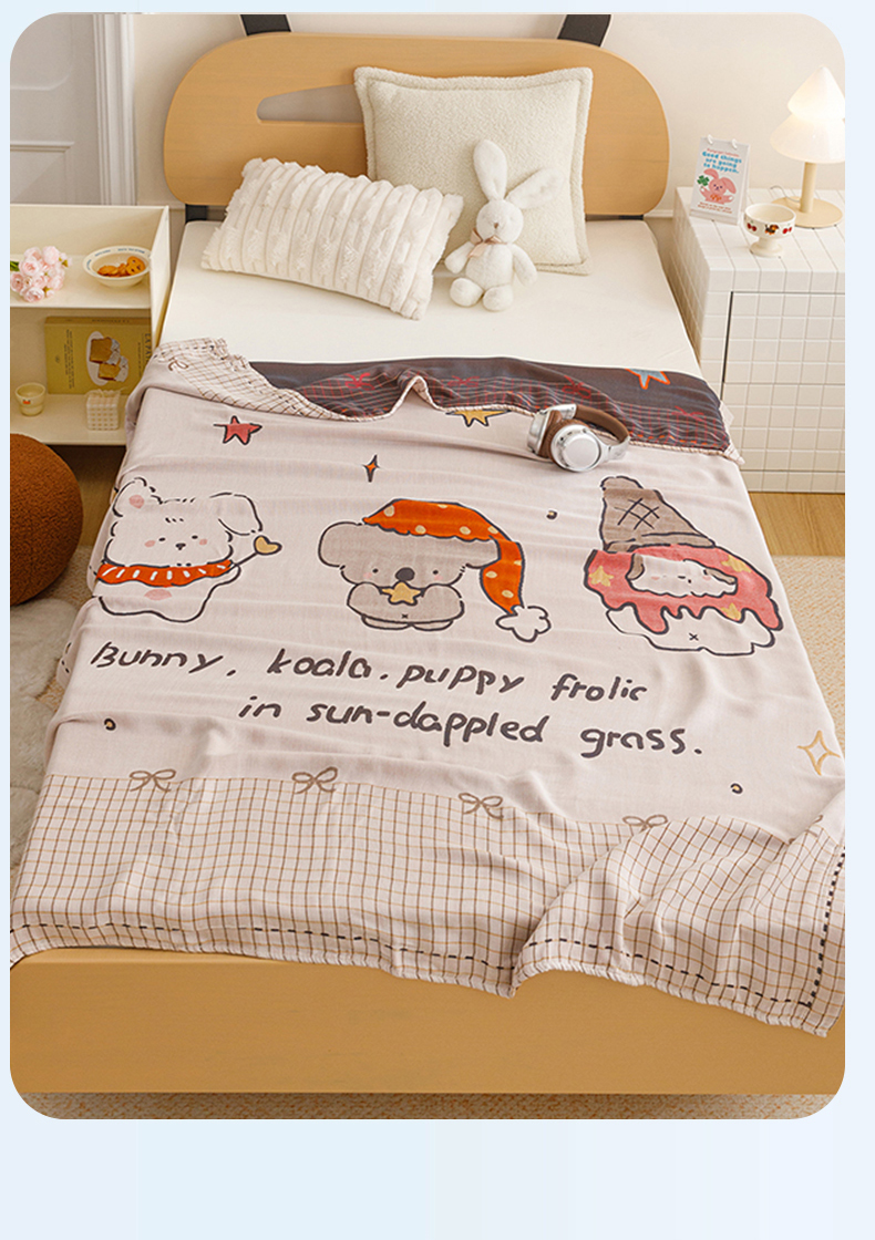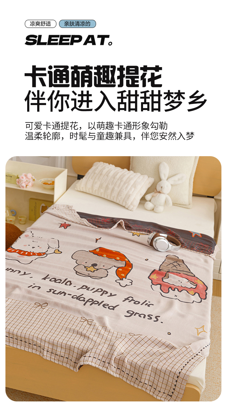 (总)悦然毛巾被 2026新款全棉纯棉三层纱布夏被毛巾被盖毯休闲色织提花卡通,暧企格语,暧运瑞猫,绿动全城,甜心兔,元气熊,组合图仅供展示不可下单