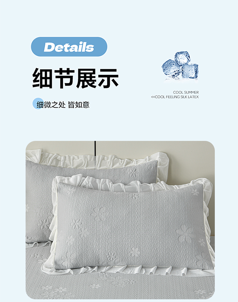 商品名称:畅畅家纺 2026春夏新款夏季3D立体冰豆豆凉席席子床裙三件套 香漫-灰