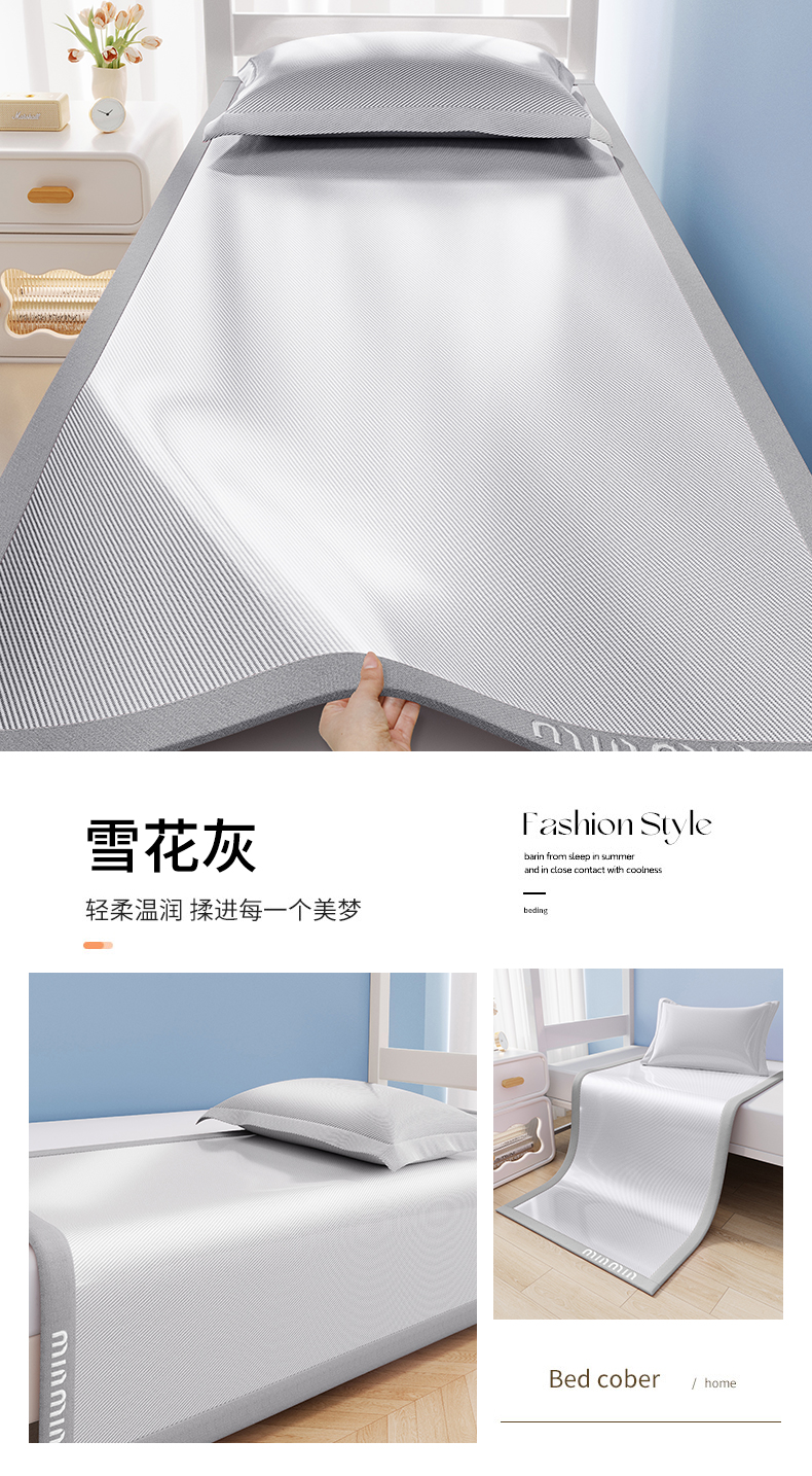 (总)女子家纺 2026新款学生床斜纹冰丝刺绣款凉席席子凉席,冰山蓝,凉茶绿,奶茶咖,宁静蓝,柠檬绿,杏仁咖,雪花灰,樱花粉