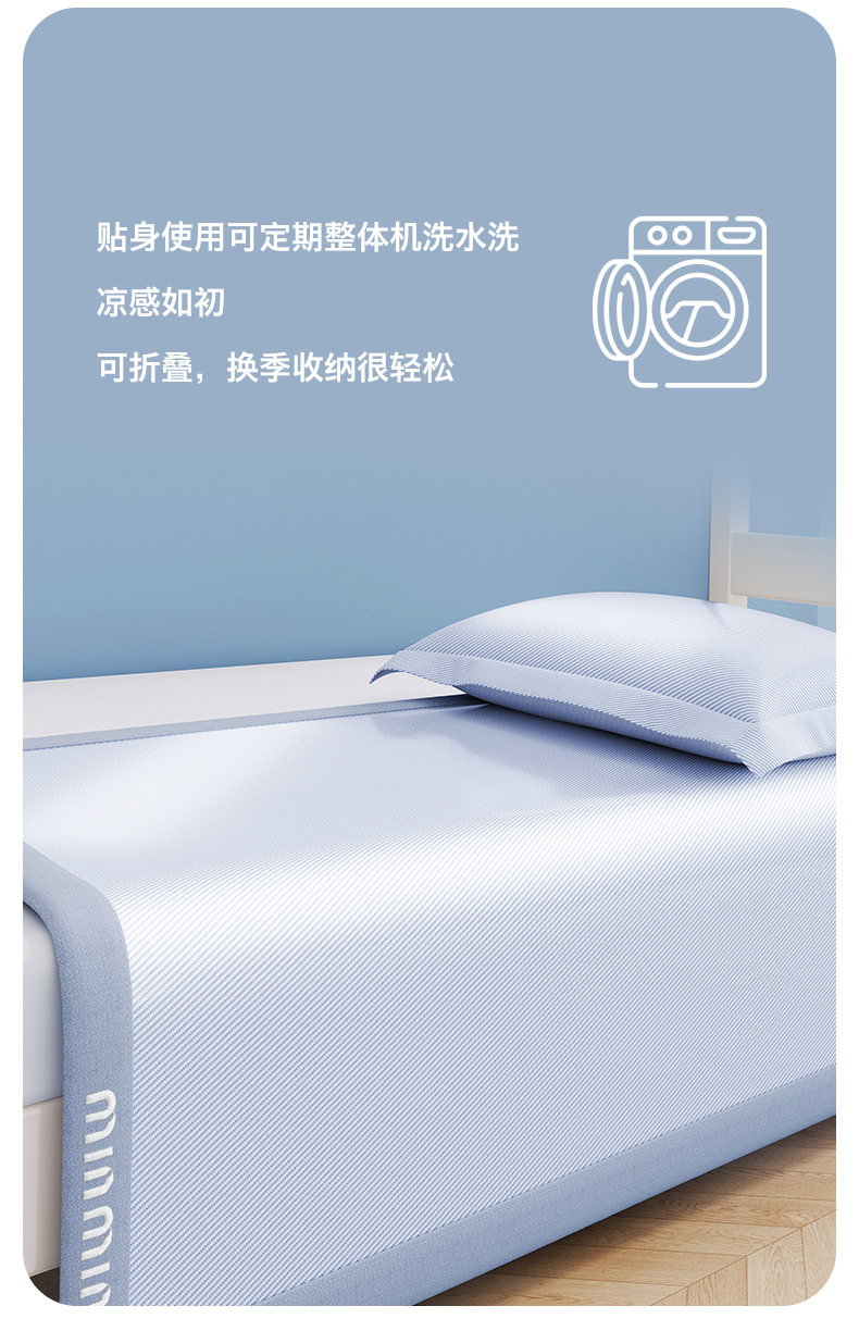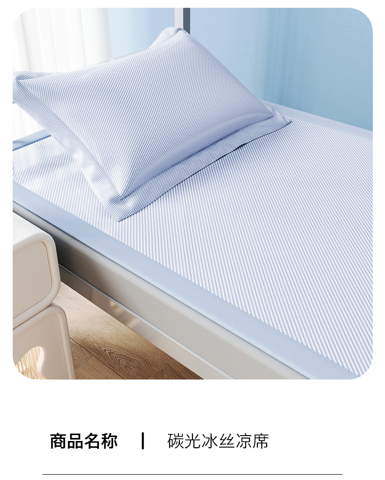 商品名称:女子家纺 2026新款学生床斜纹冰丝刺绣款凉席席子凉席 宁静蓝