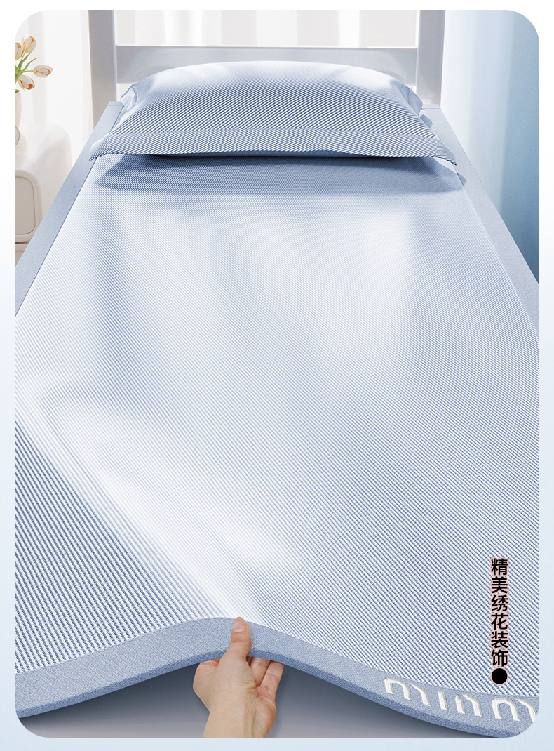 女子家纺 2026新款学生床斜纹冰丝刺绣款凉席席子凉席 宁静蓝