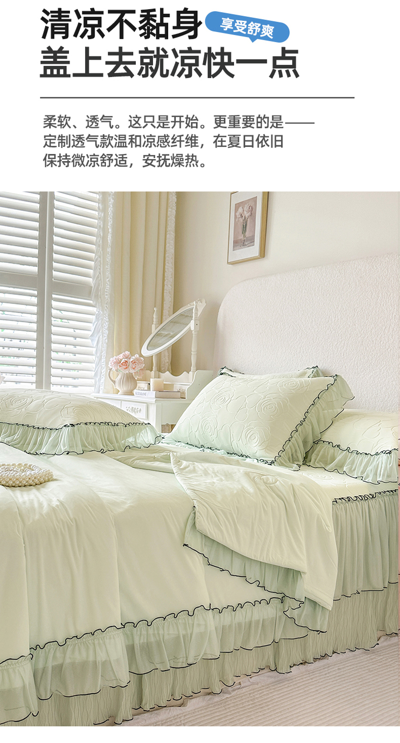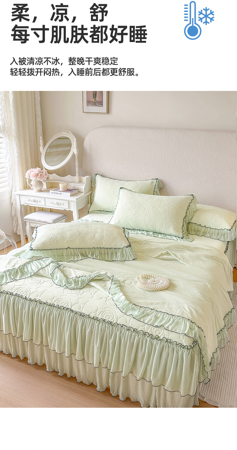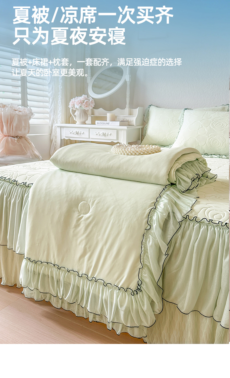 当前位置: 91家纺网 > 商品网购 > 床品套件 > 四件套 > 夏被四件套 > 网红馆(ck家纺) 2026春夏新款仲夏冰丝凉席夏被夏凉被空调被四件套 仲夏-绿