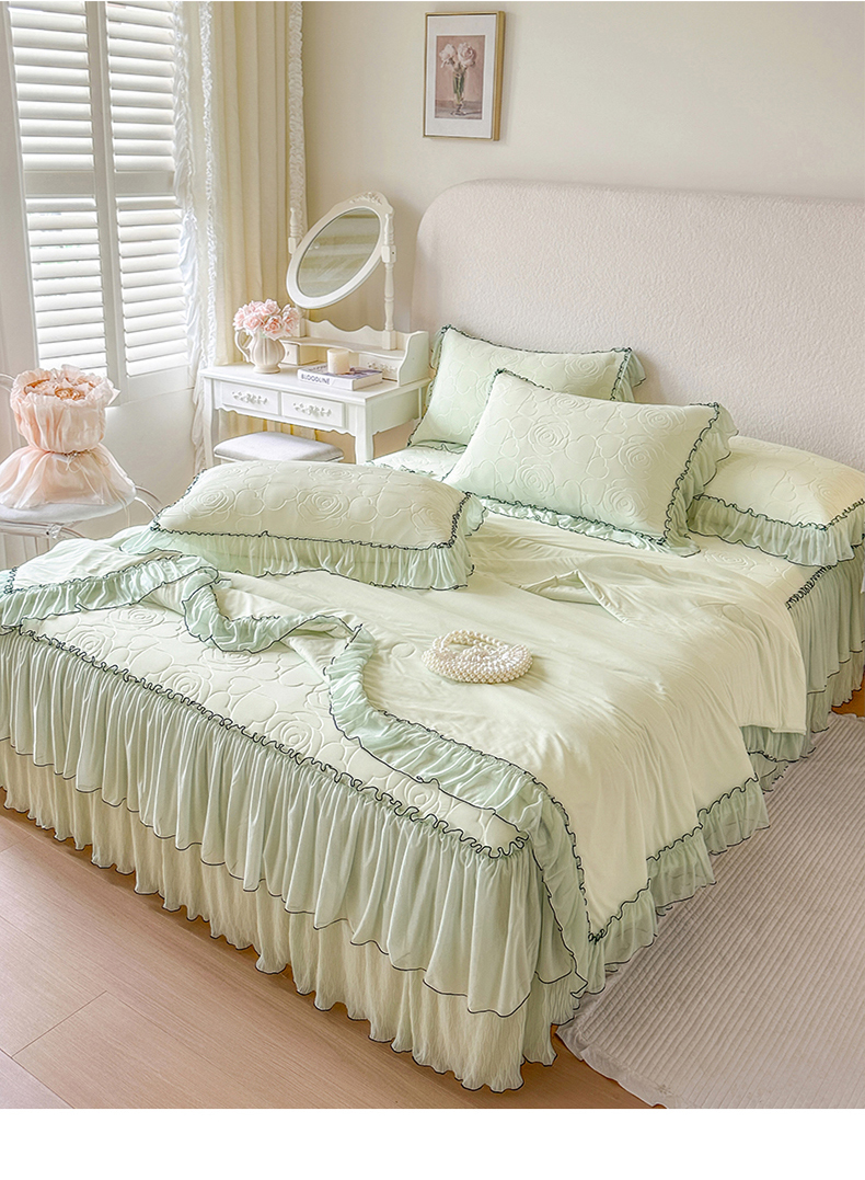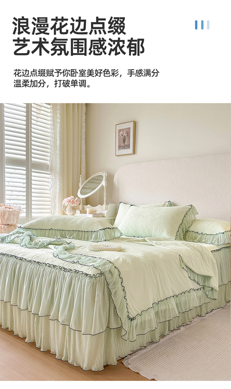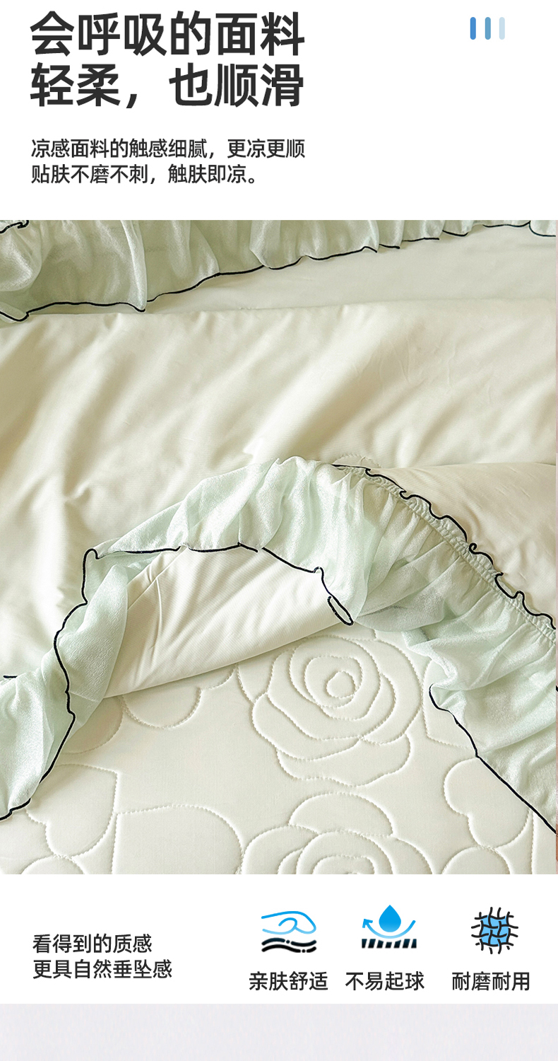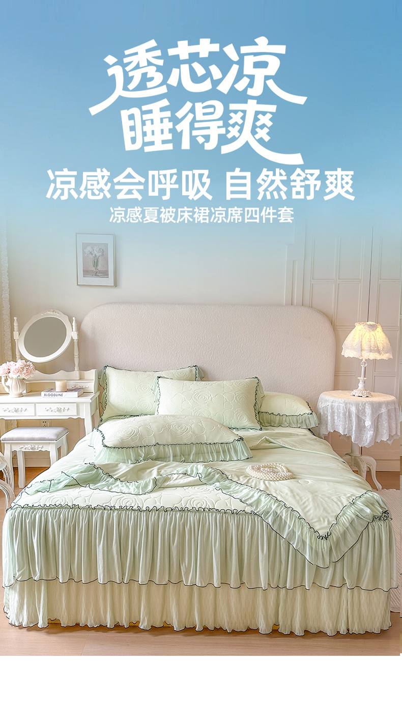 当前位置: 91家纺网 > 商品网购 > 床品套件 > 四件套 > 夏被四件套 > 网红馆(ck家纺) 2026春夏新款仲夏冰丝凉席夏被夏凉被空调被四件套 仲夏-绿
