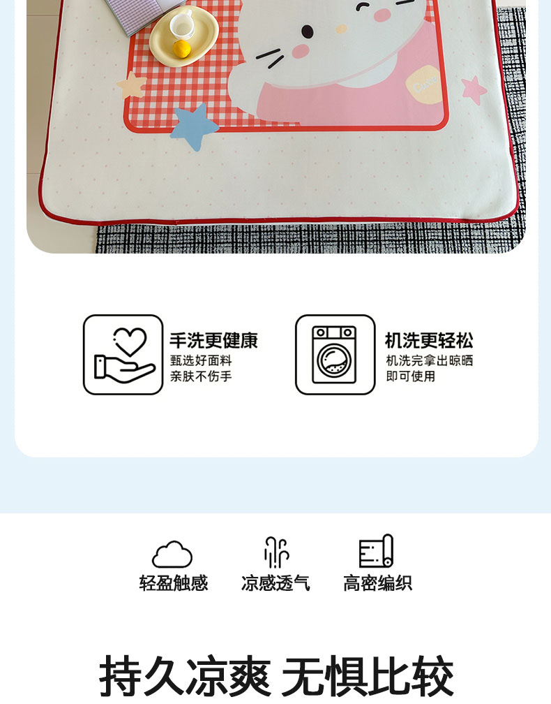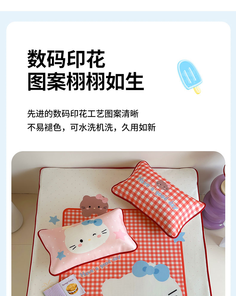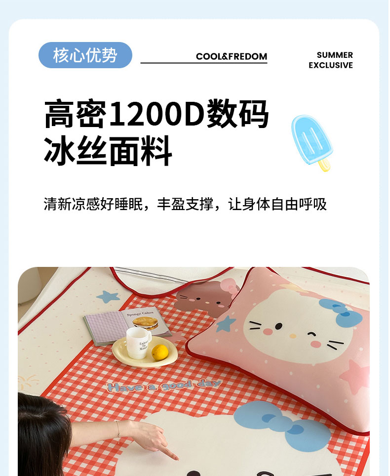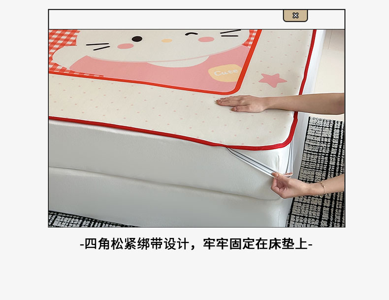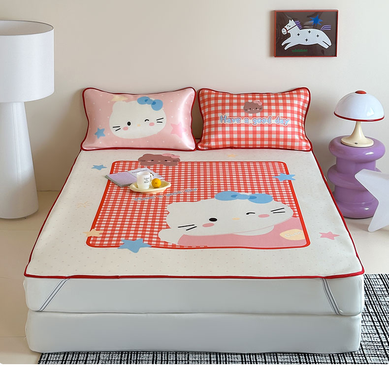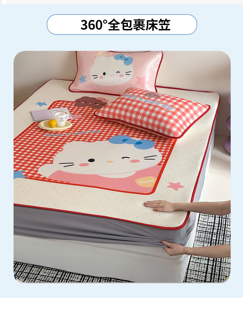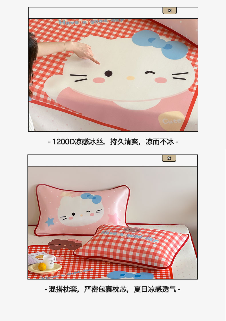 当前位置: 91家纺网 > 商品网购 > 床上用品 > 凉席 > 桃子家居 2026新款A类ins博主卡通数码印花高级品质撞色中分子1200D冰感丝凉感席冰丝三件套平铺床笠系列 冰感席混搭-红格甜美猫