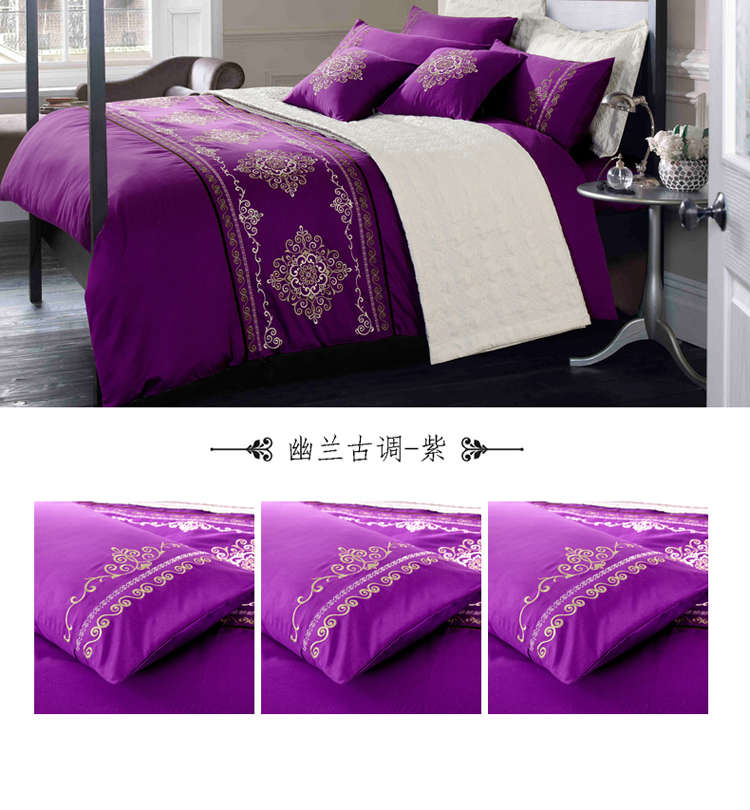 兴美佳家纺 欧式60s贡缎长绒棉刺绣四件套幽兰古调-紫