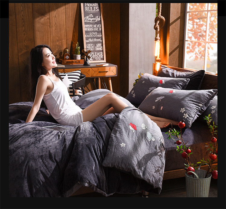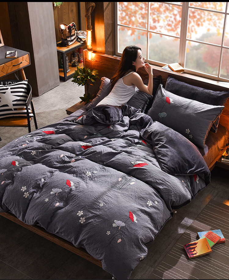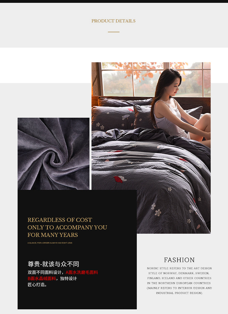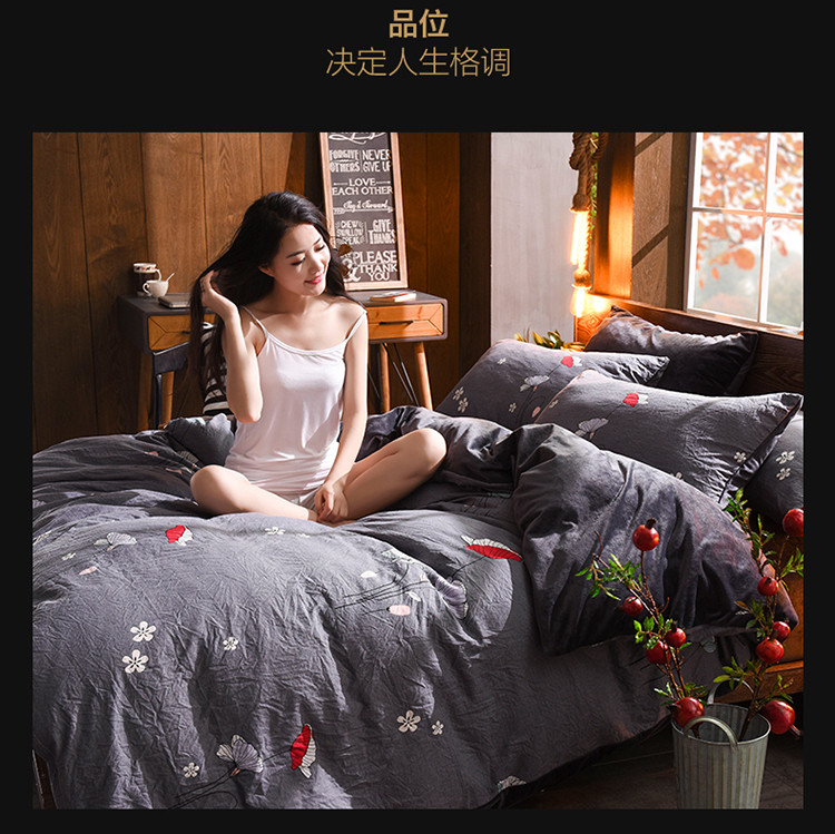 芃成家纺 水洗磨毛加绒四件套 荷塘月色