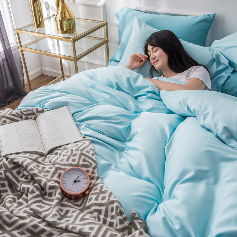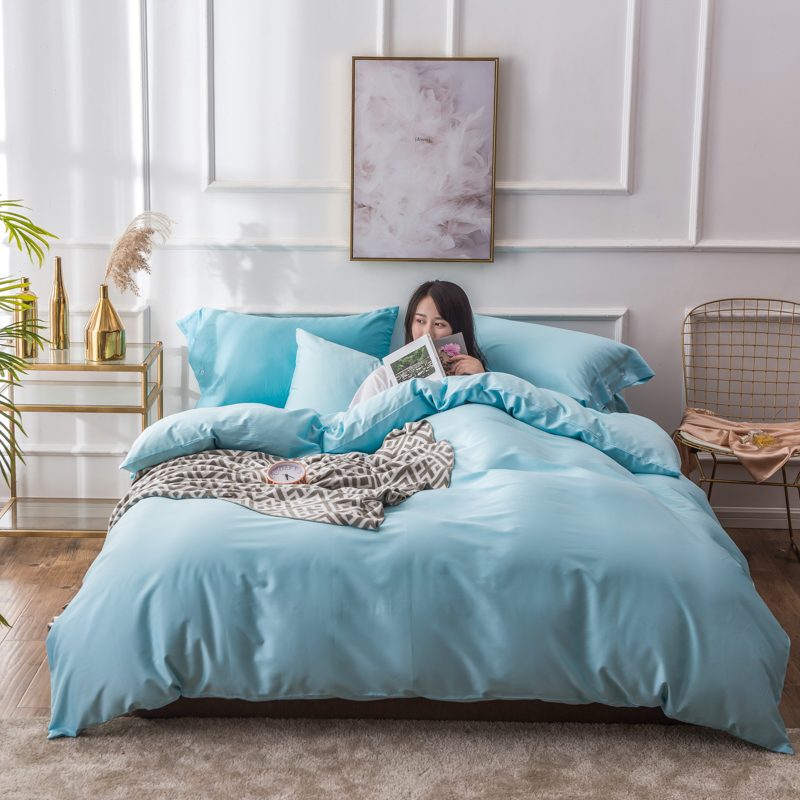 馨蕊家居 60长绒棉纯色款浅色系蒂芙尼蓝