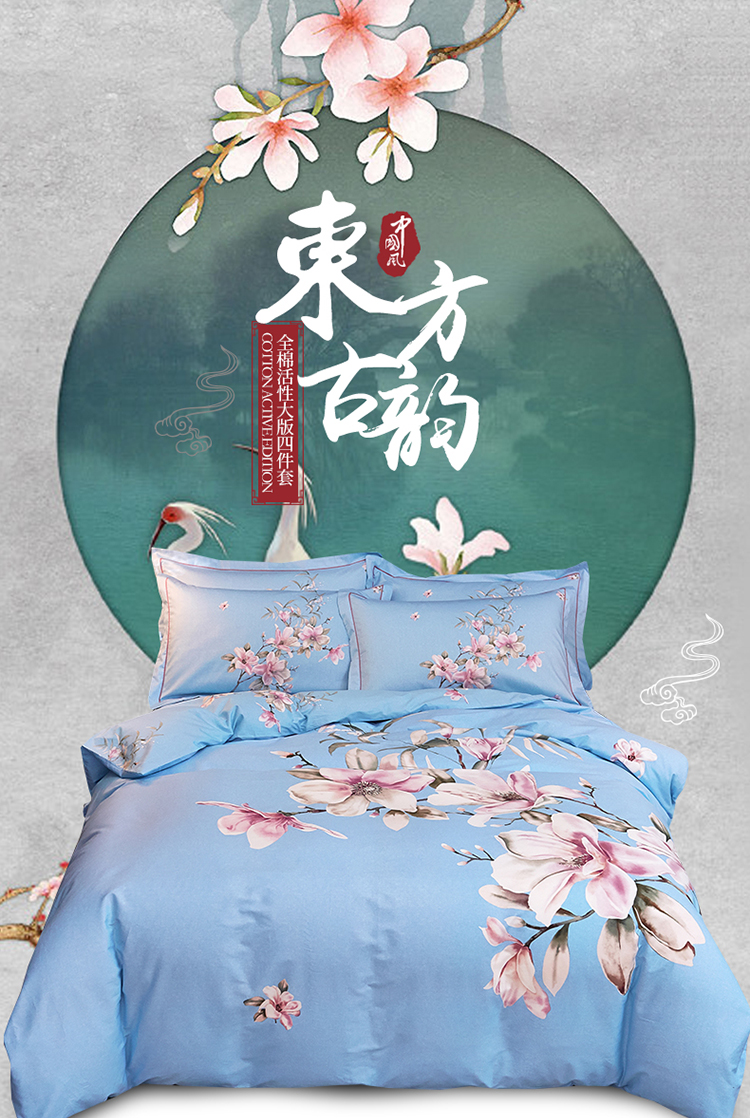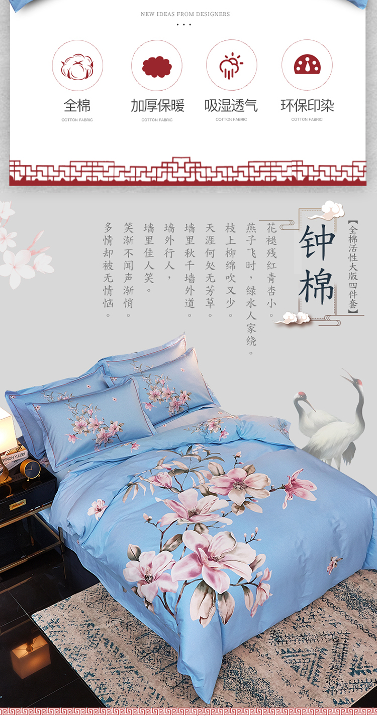 雲归梦家纺 2019新款13372全棉活性大版四件套 花意兰