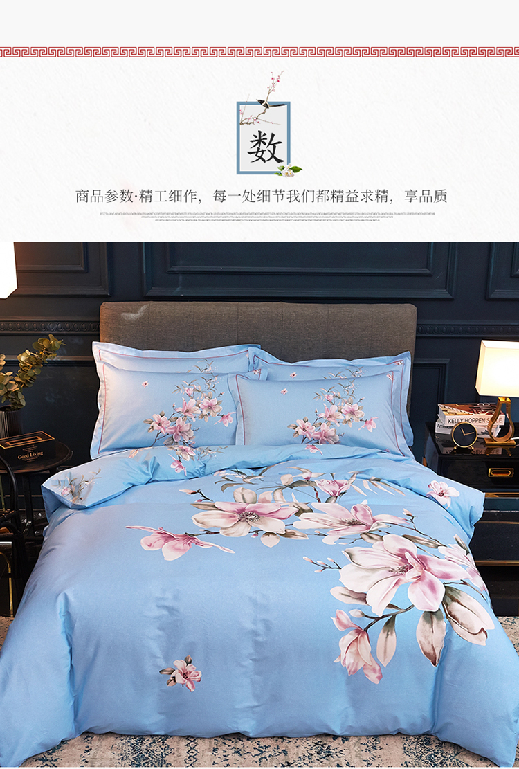 商品名称:雲归梦家纺 2019新款13372全棉活性大版四件套 花意兰