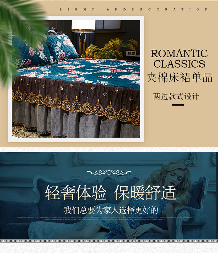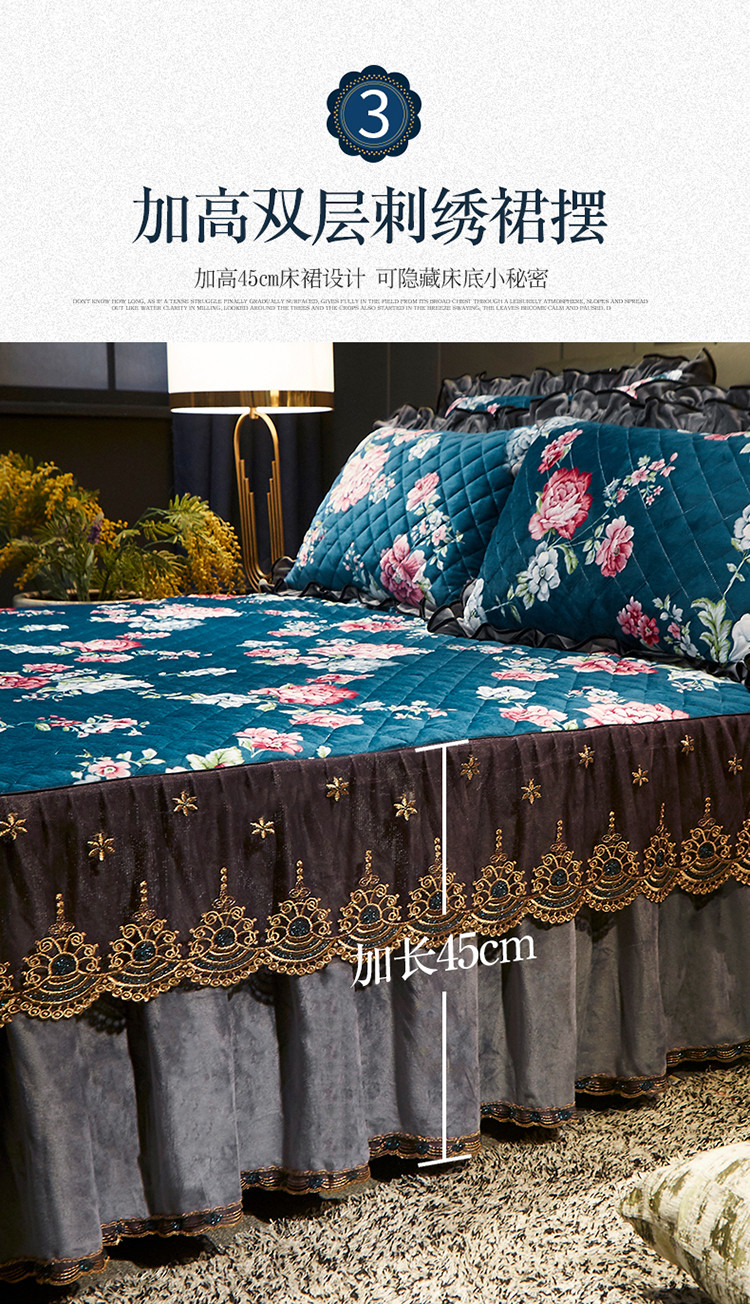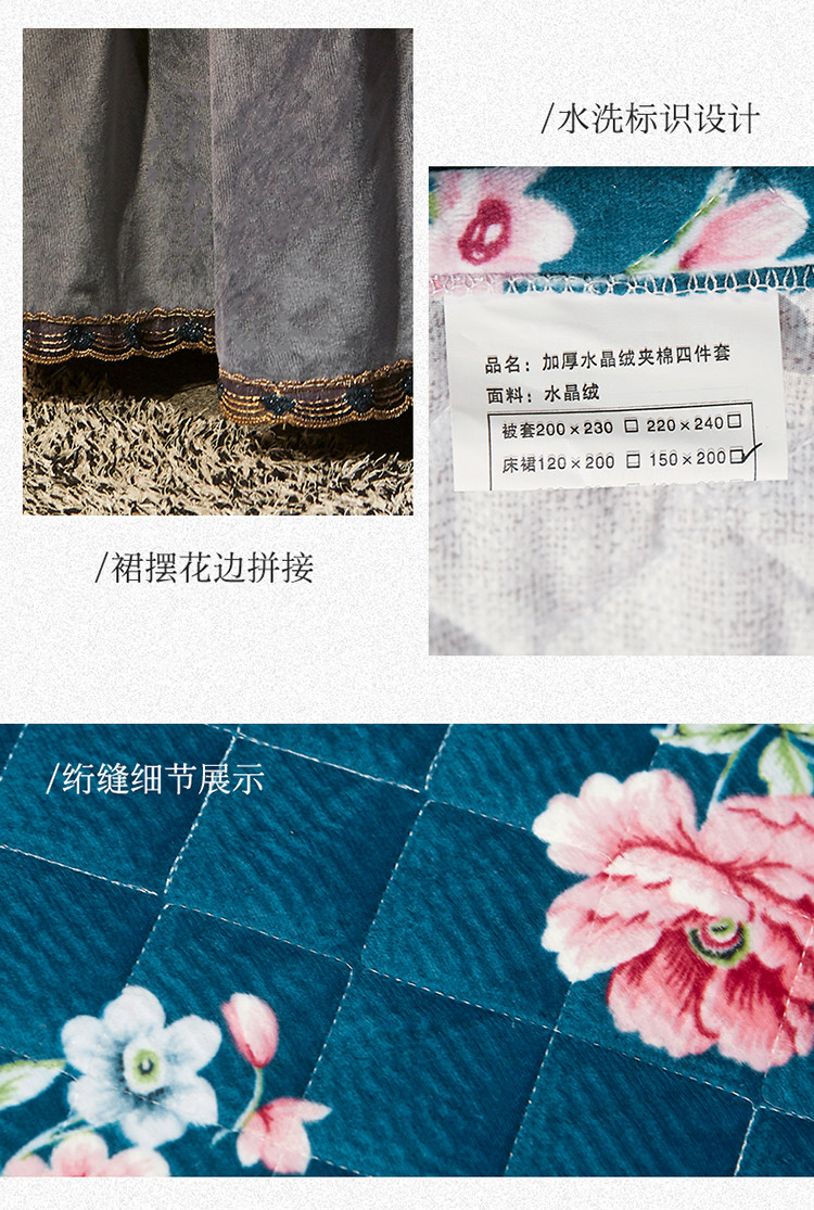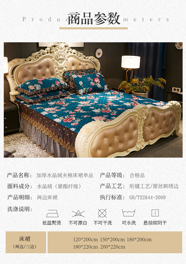 商品名称:宜凡家纺 2019新款水晶绒印花系列单床裙两边 华似锦