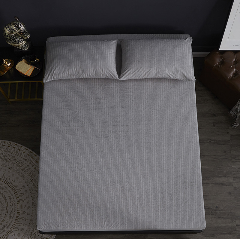 小米笠 2019新款全棉条纹毛巾布防水床笠床罩 条纹灰