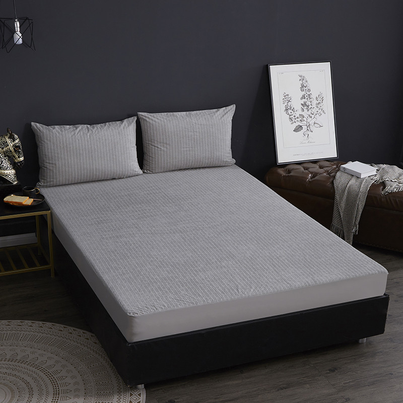 商品名称:小米笠 2019新款全棉条纹毛巾布防水床笠床罩 条纹灰