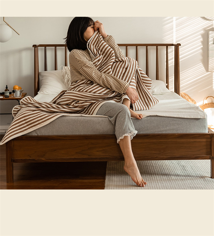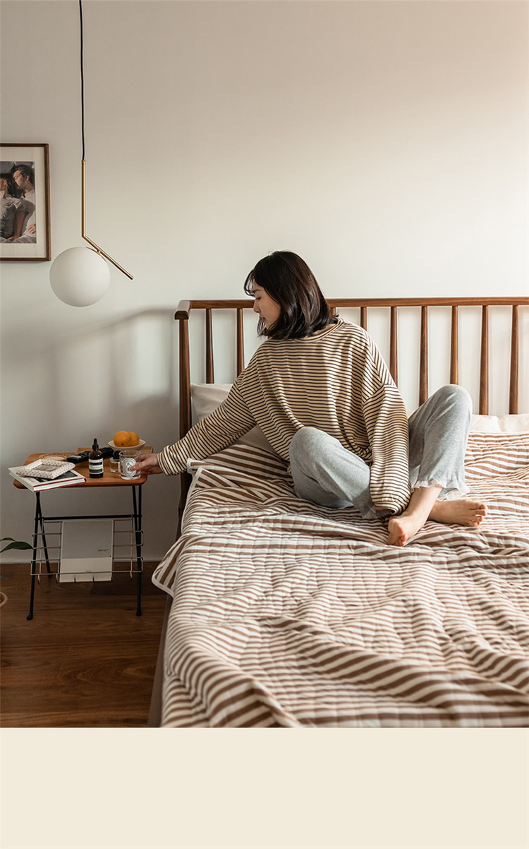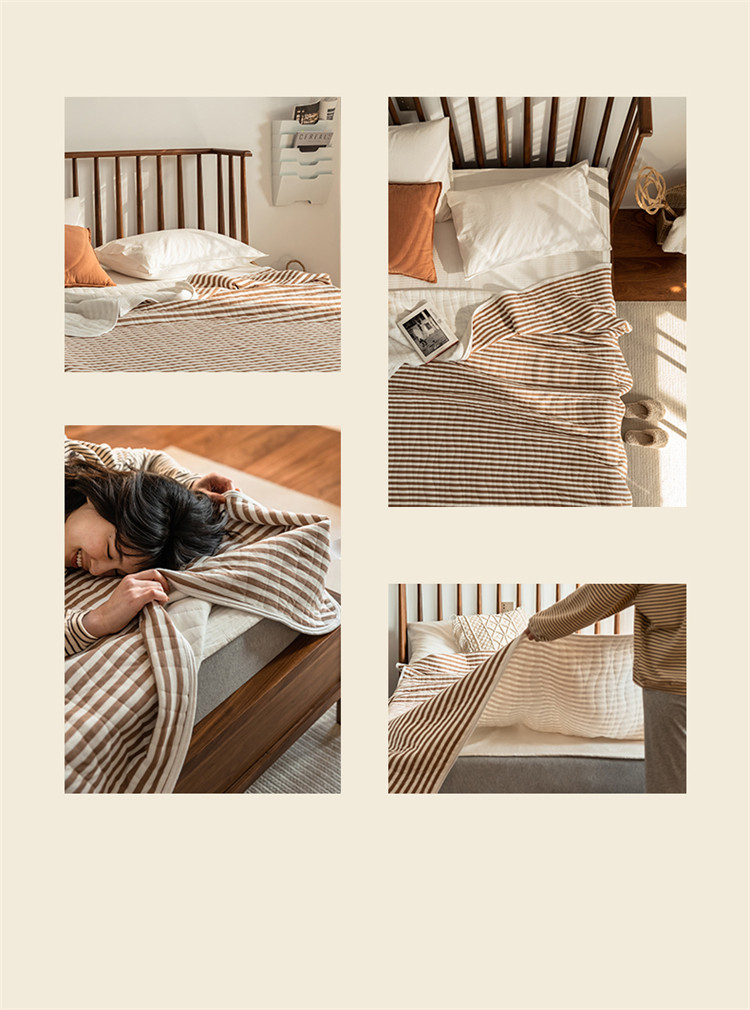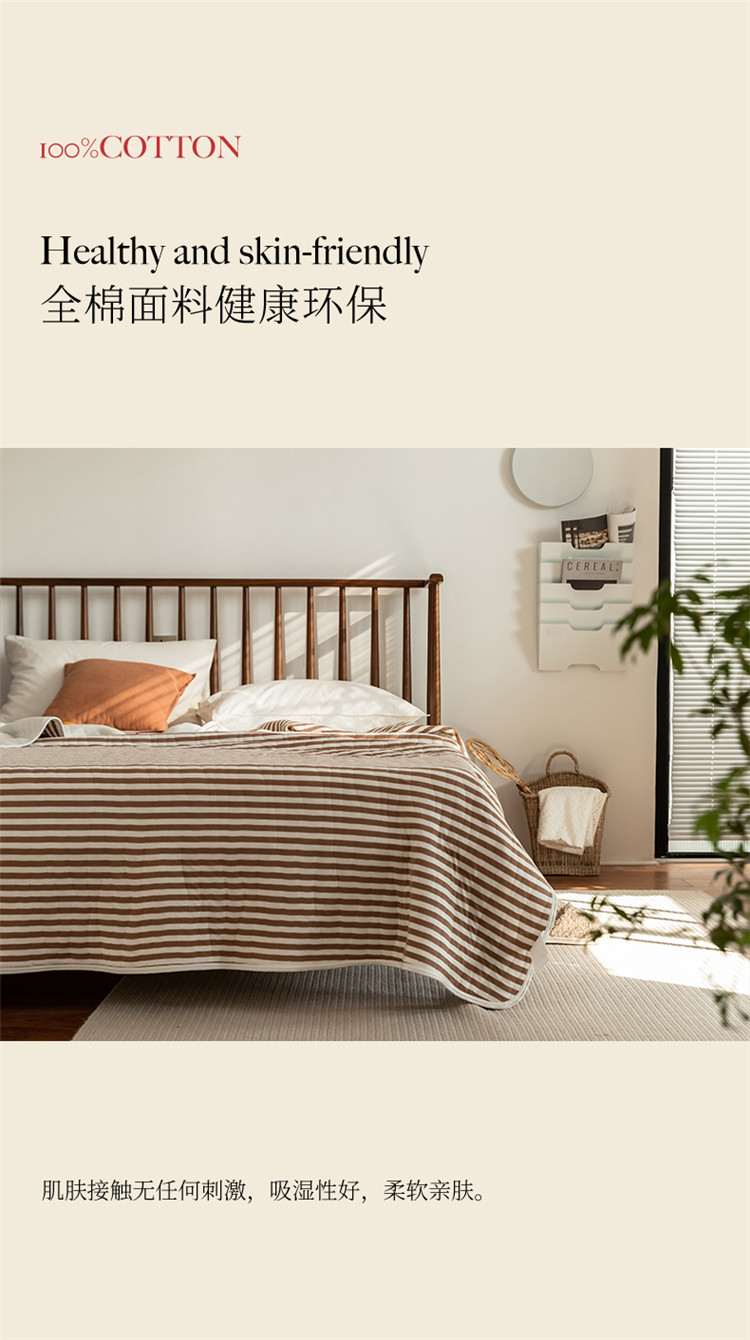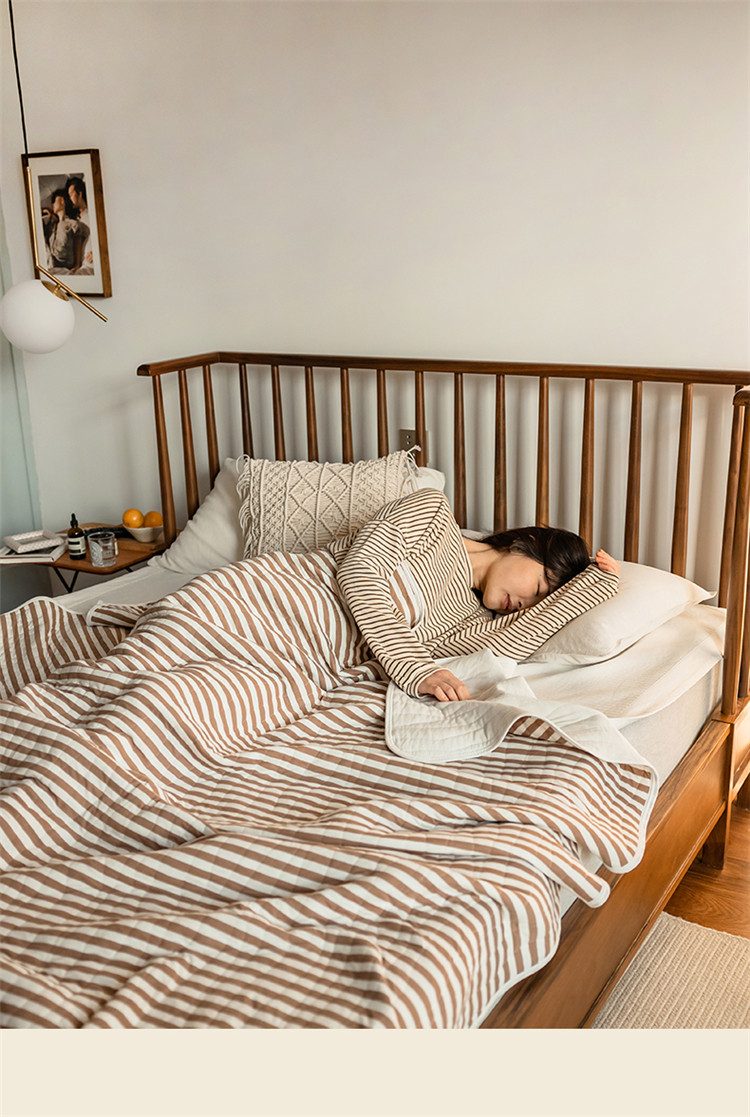 新款 全棉针织棉夏被 天竺棉夏凉被 深咖条纹