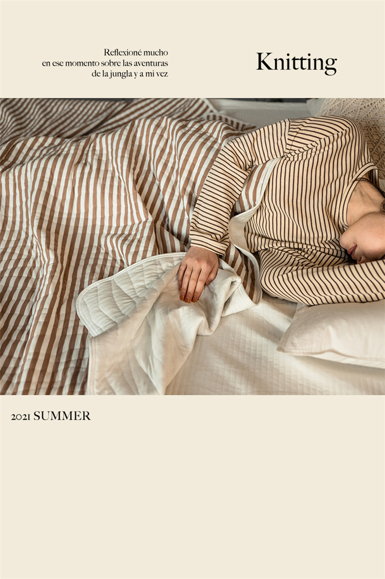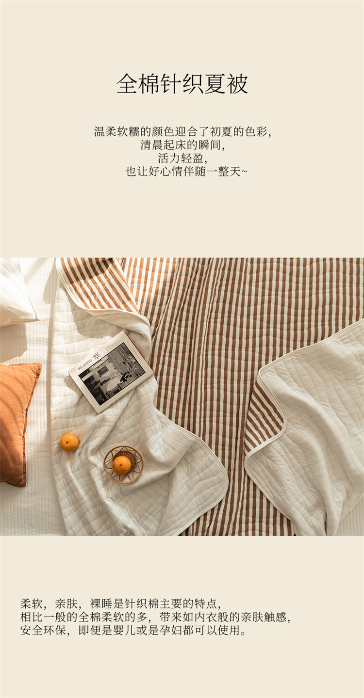 商品名称:新款 全棉针织棉夏被 天竺棉夏凉被 深咖条纹