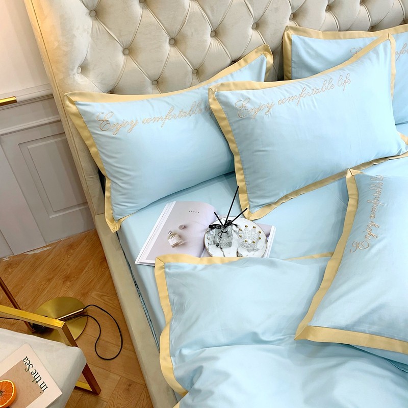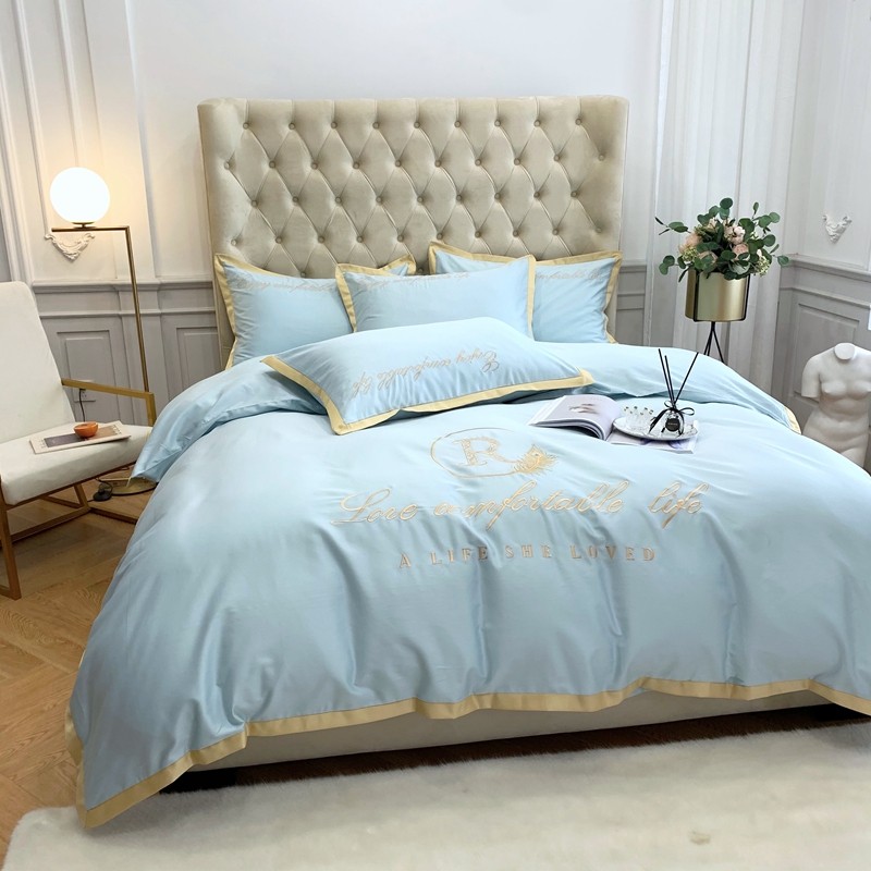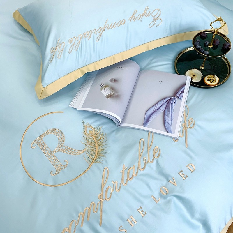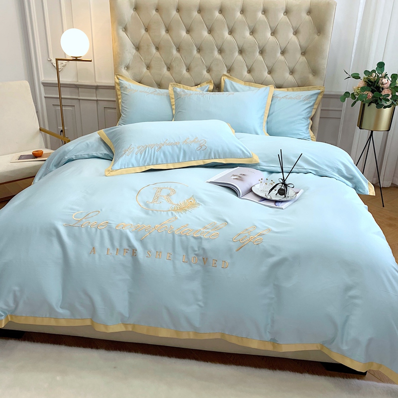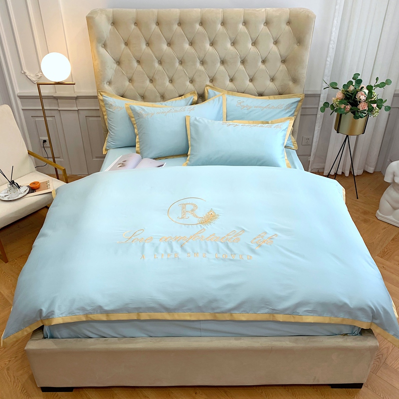 馨蕊家居 2021新款60长绒棉四件套简爱系列 简爱-蒂芙尼蓝