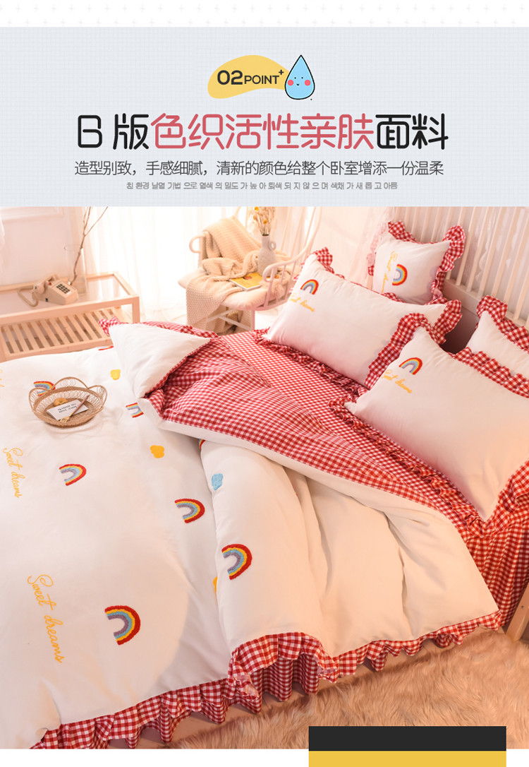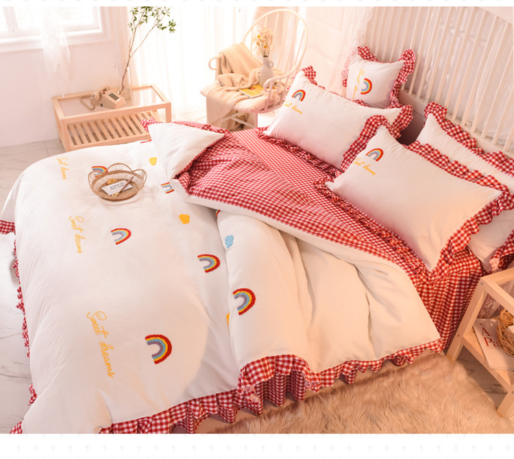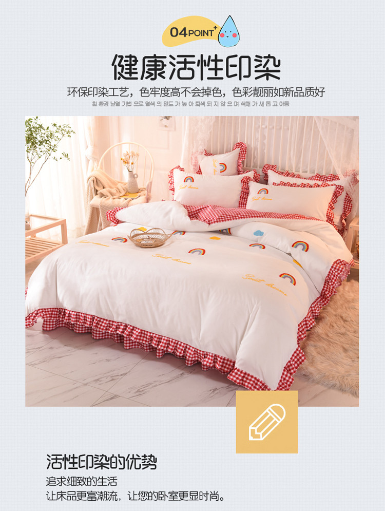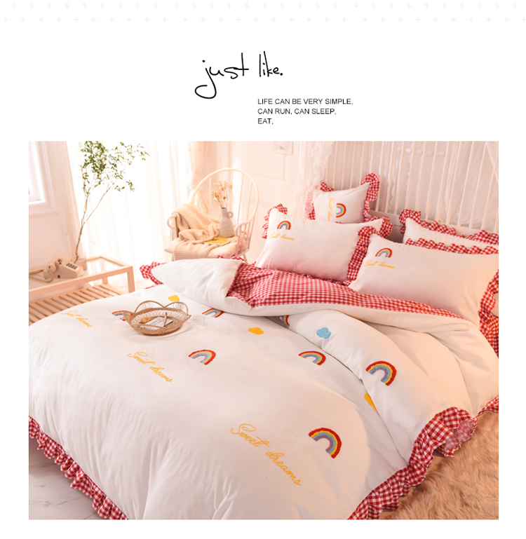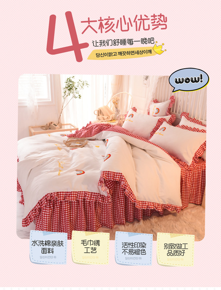 当前位置: 91家纺网 > 商品网购 > 床品套件 > 四件套 > 全棉普通四件套 > 欧冠家纺 2020新款毛巾绣色织四件套 彩虹-富贵红