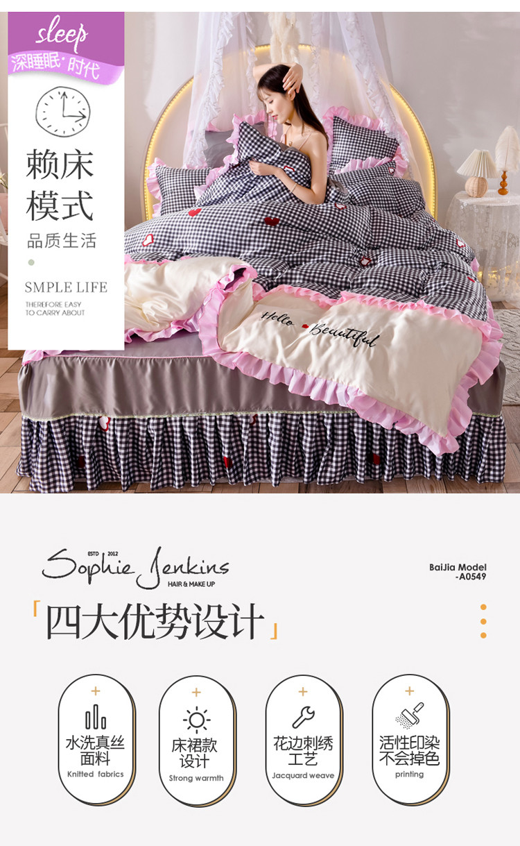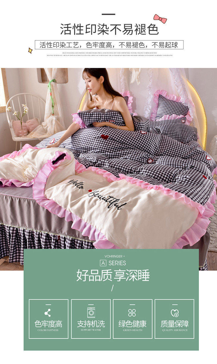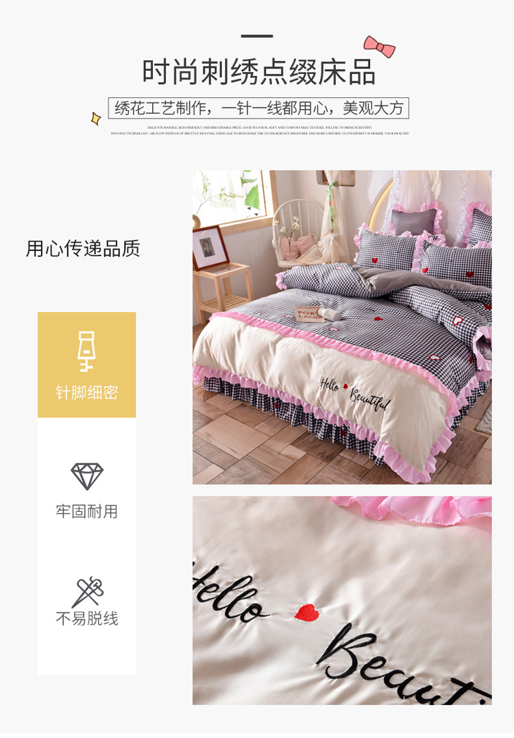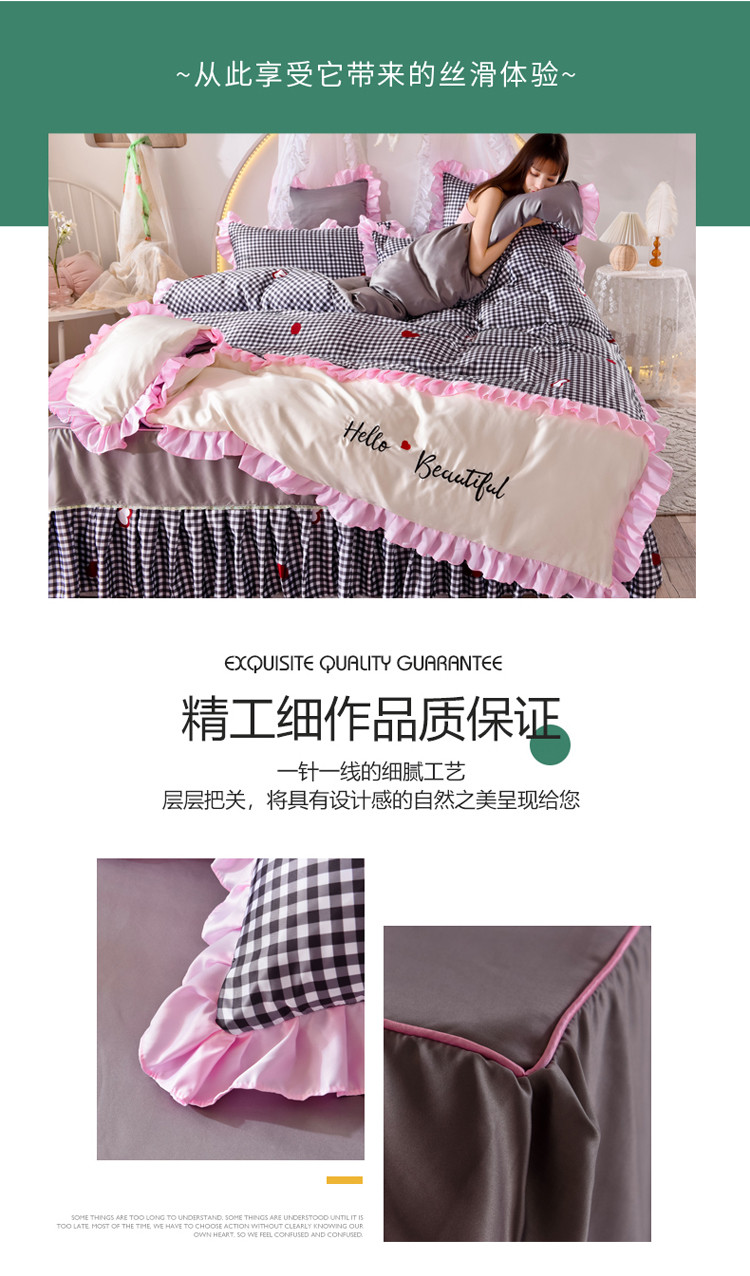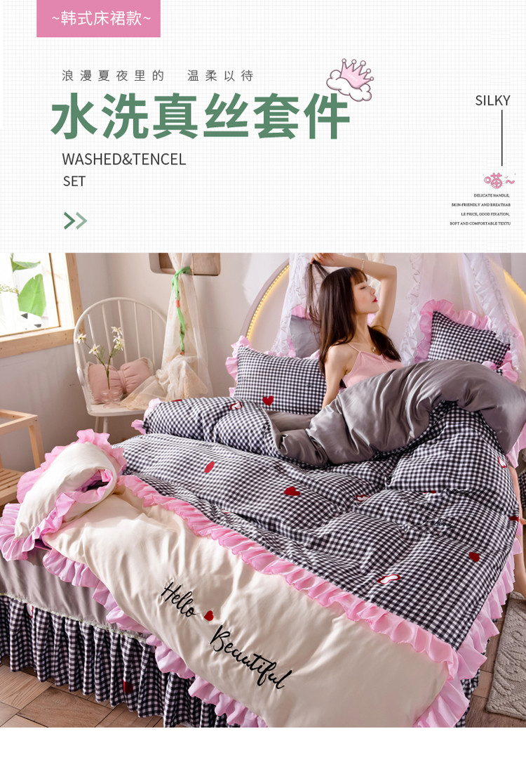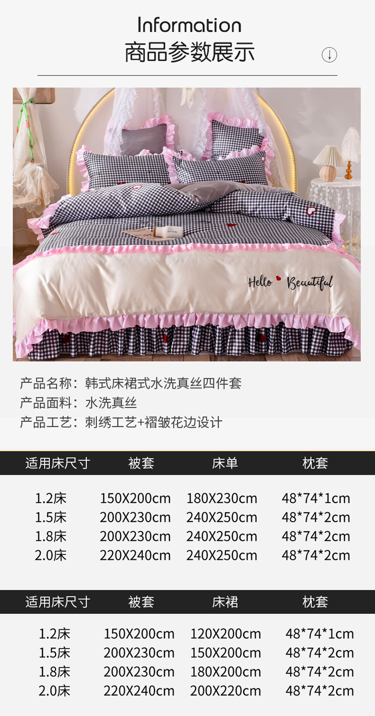 当前位置: 91家纺网 > 商品网购 > 床品套件 > 四件套 > 水洗棉四件套 > 欧冠 2020款水洗真丝绣花床裙款四件套 倾心-灰