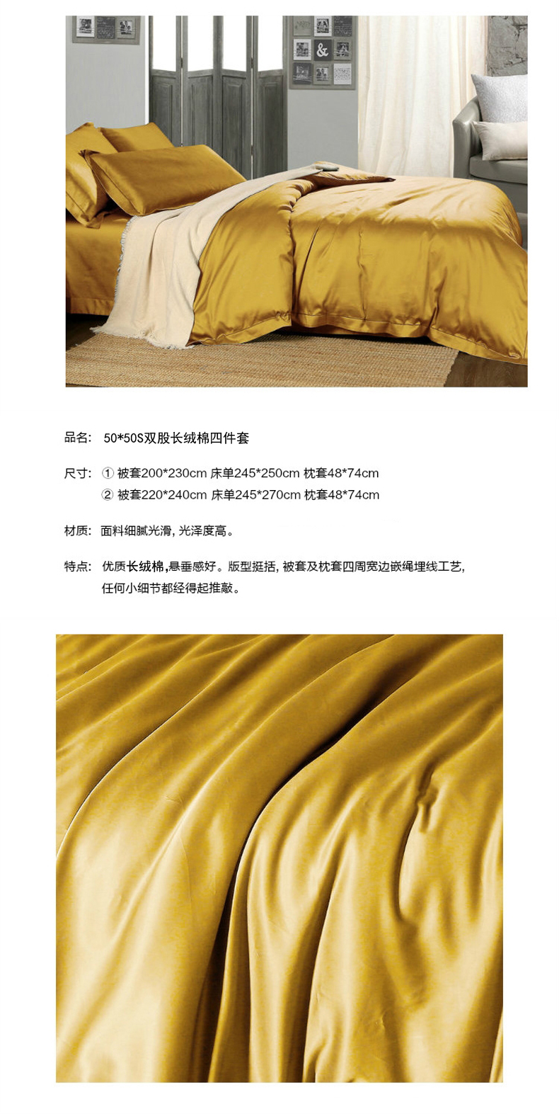 商品名称:十九色 2024新款50*50纯色埋线款四件套 雅丽黄