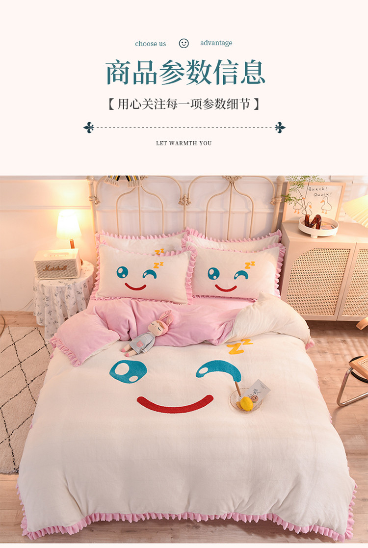 (总)兴美佳家纺新款牛奶绒花边毛巾绣四件套-你的微笑