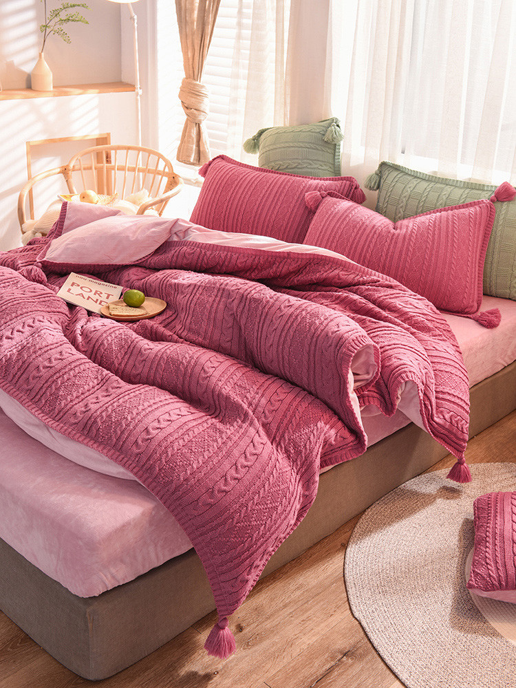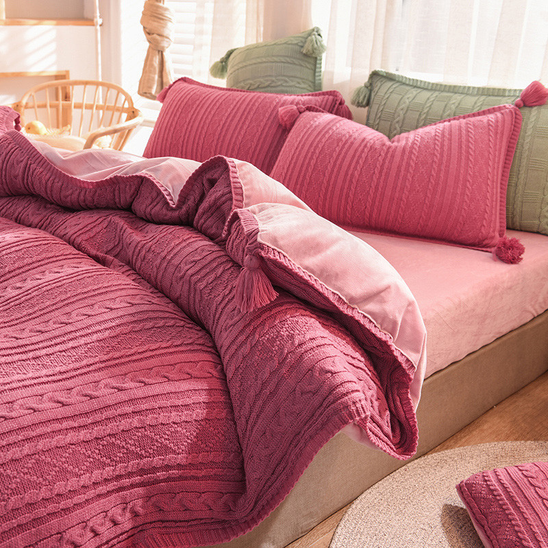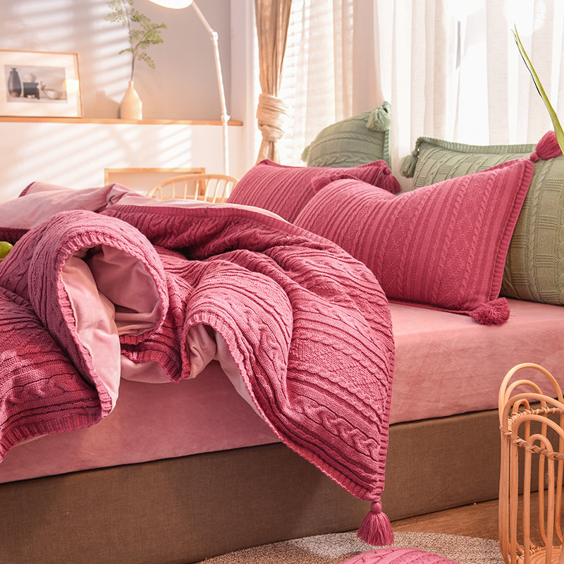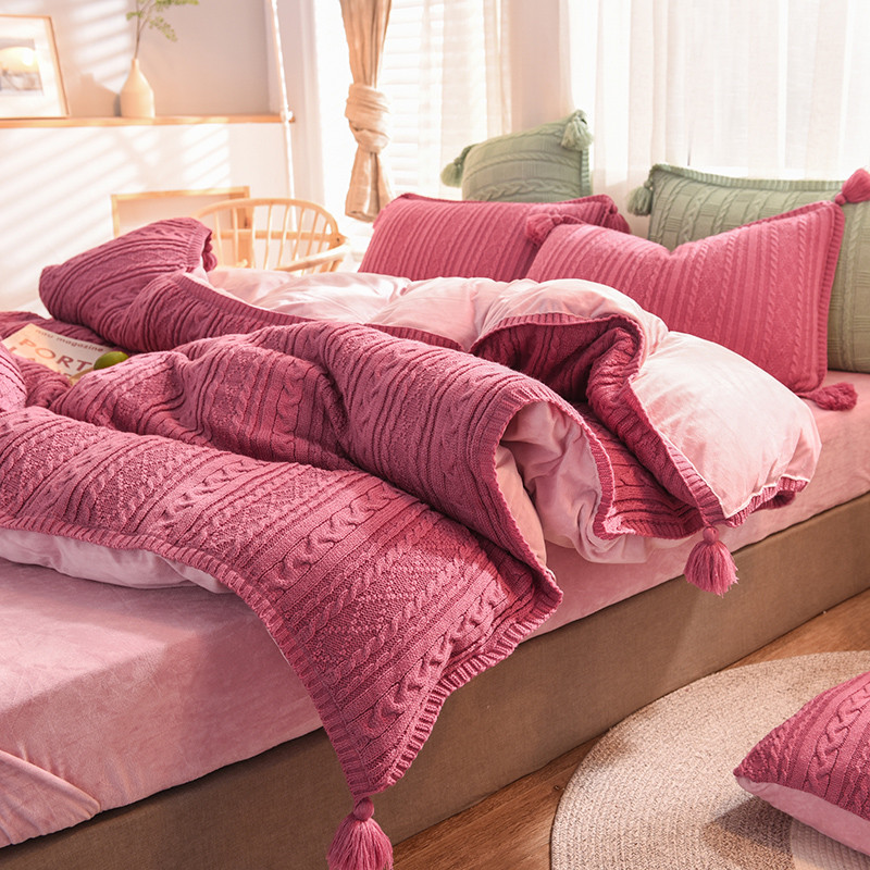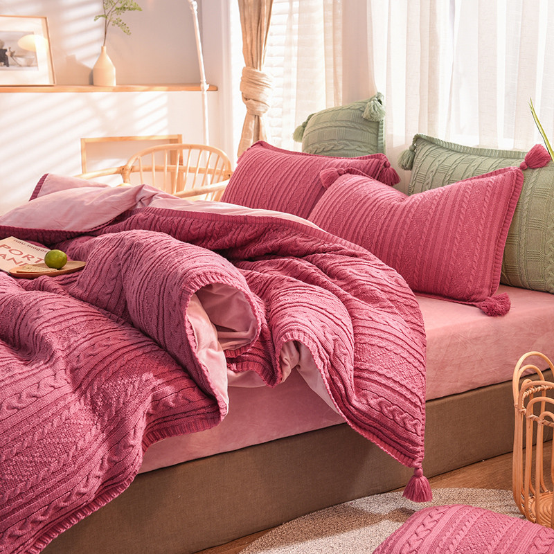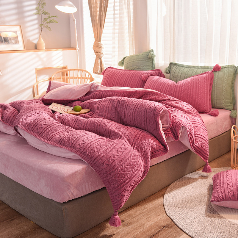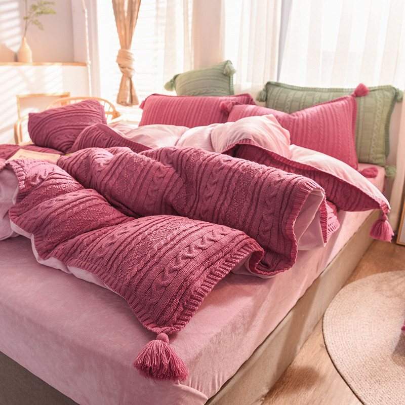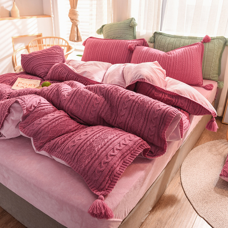 商品名称:淑女公社 2020秋冬新款针织毛线四件套 豆沙