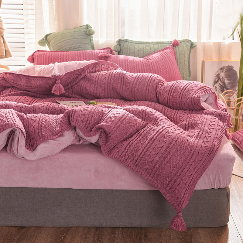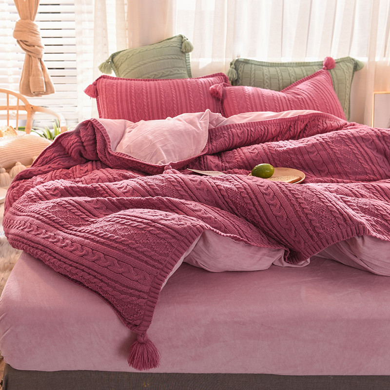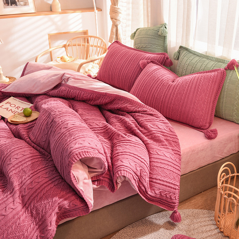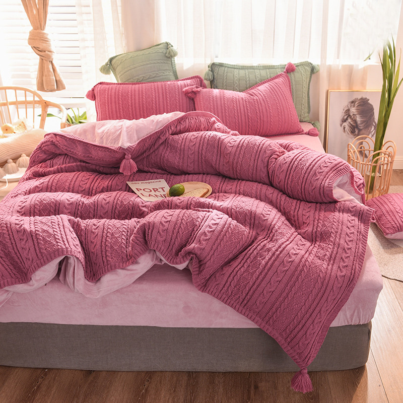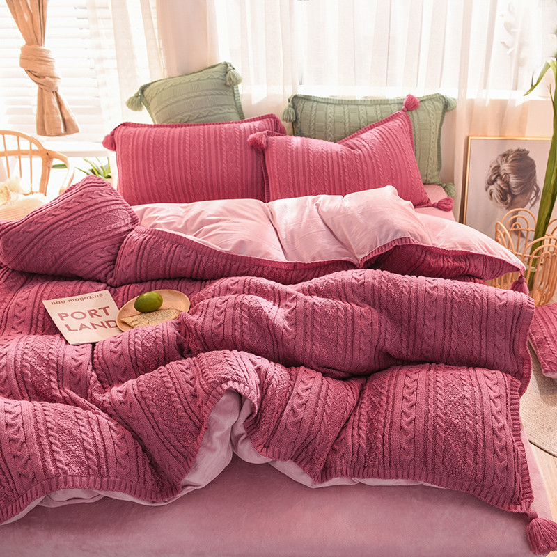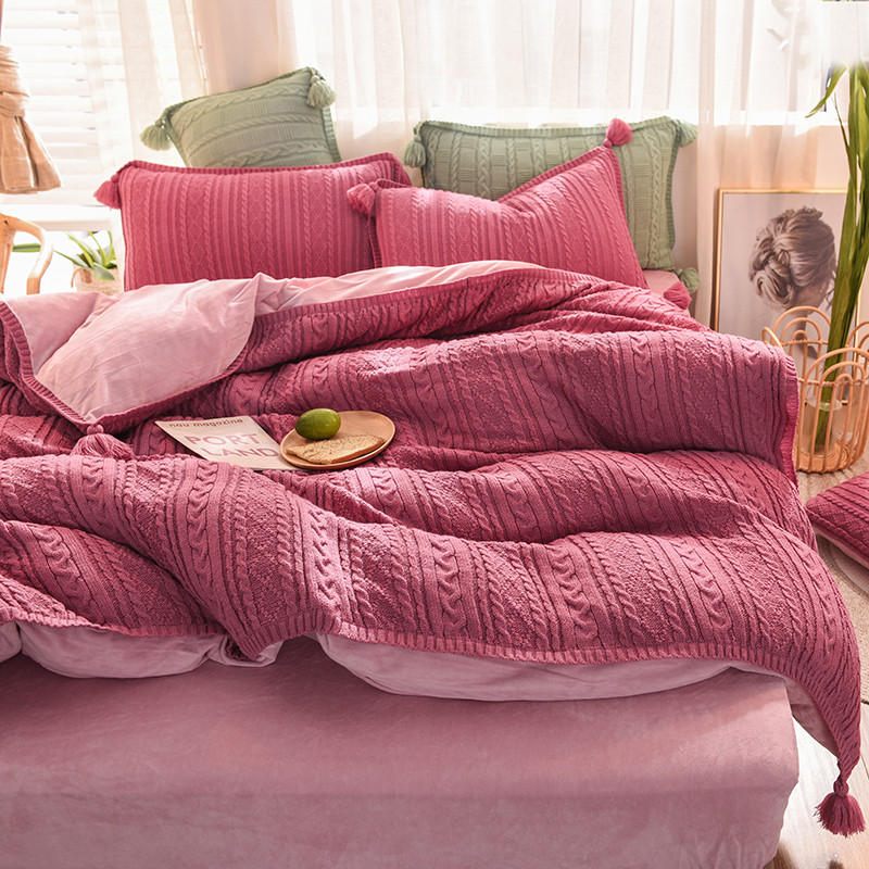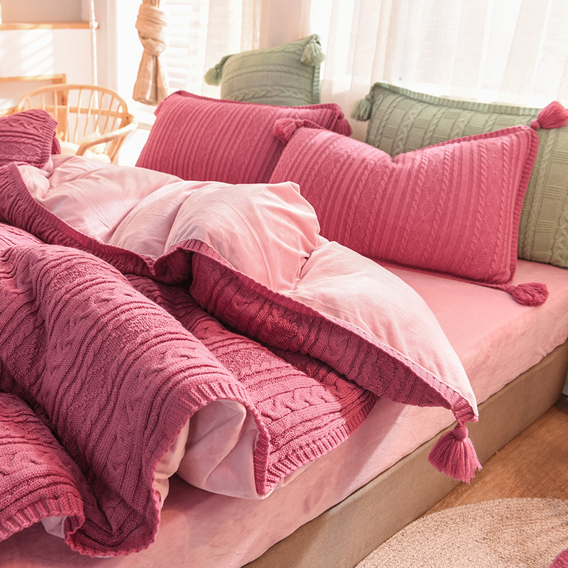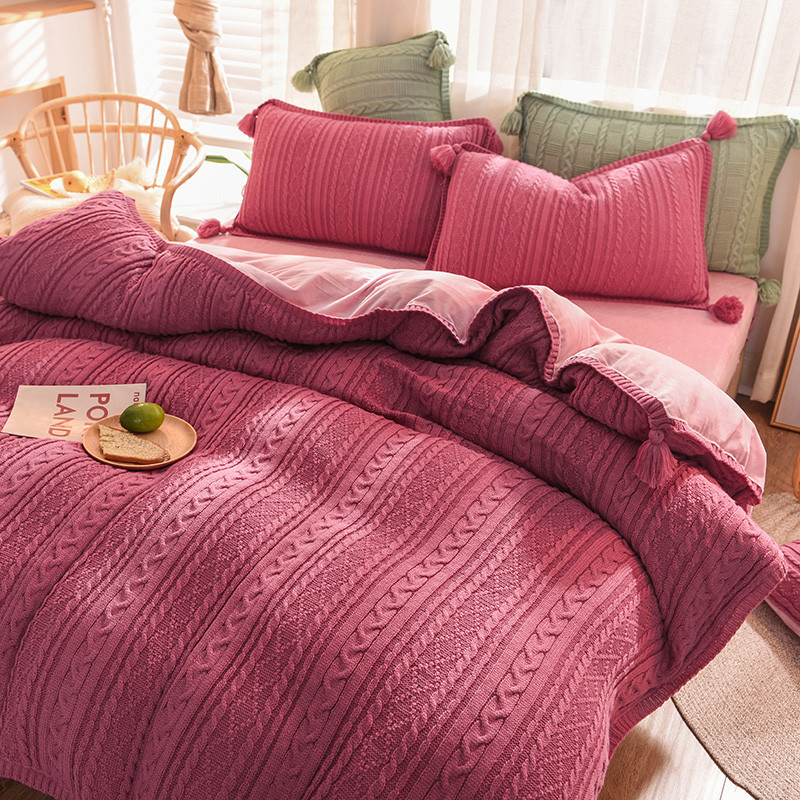 商品名称:淑女公社 2020秋冬新款针织毛线四件套 豆沙