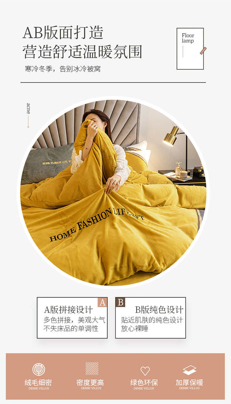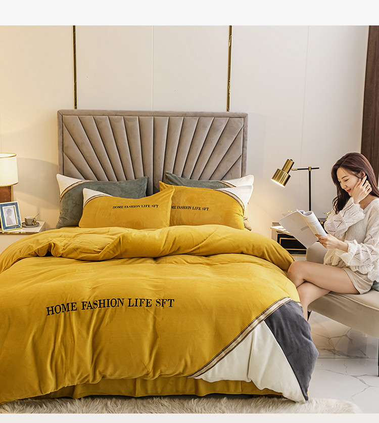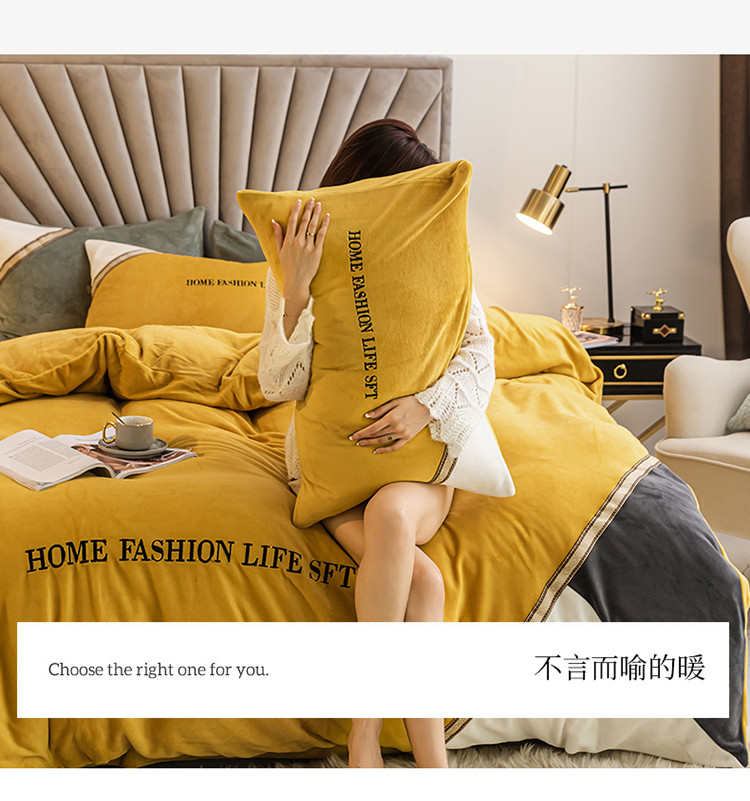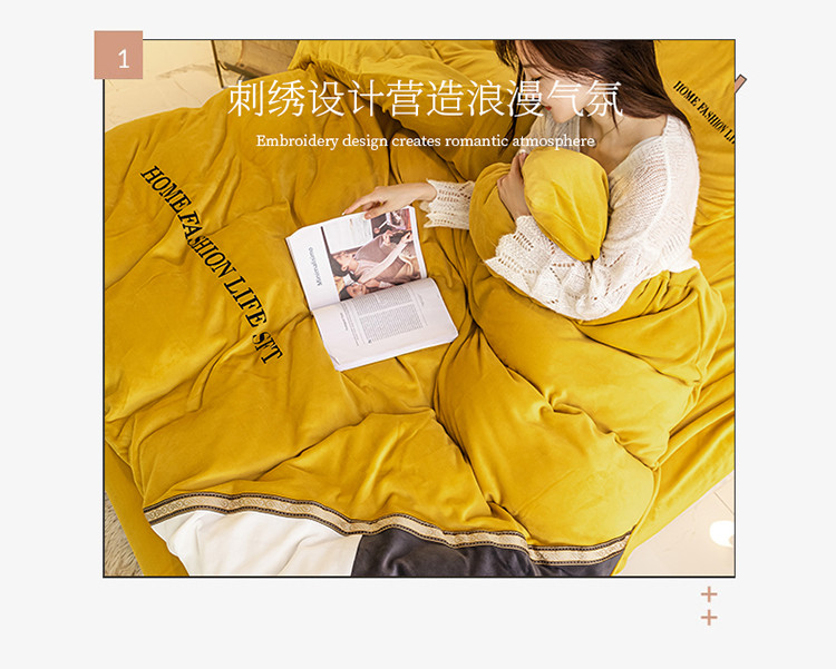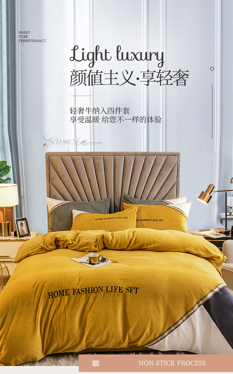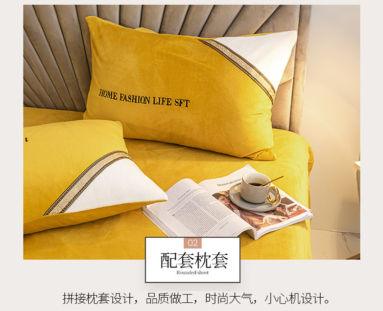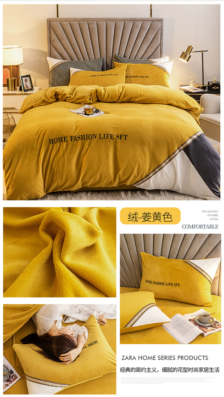 索飞特 2022新款牛奶绒拼角工艺款四件套 绒-姜黄色