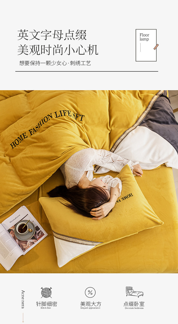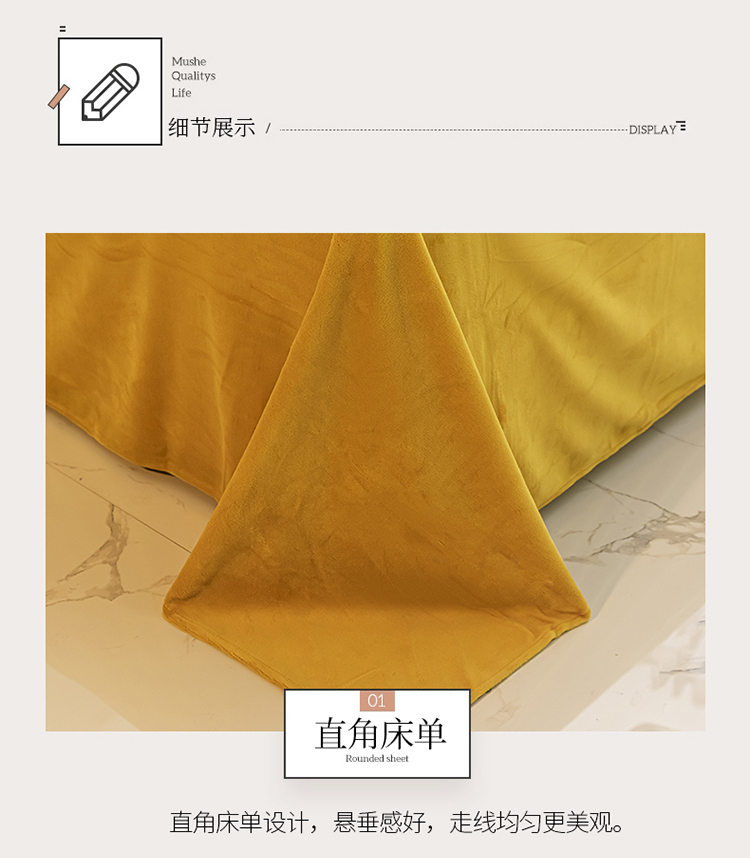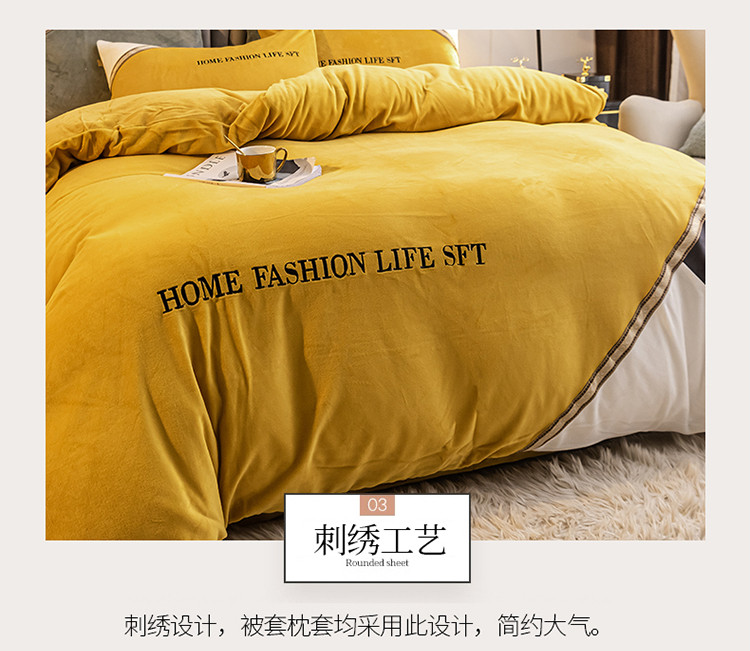 商品名称:索飞特 2022新款牛奶绒拼角工艺款四件套 绒-姜黄色