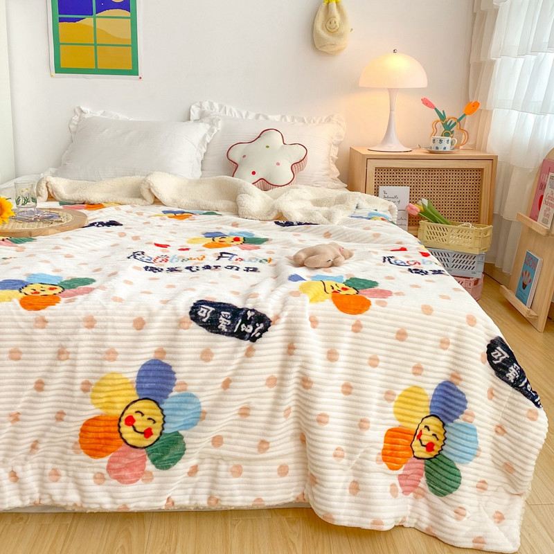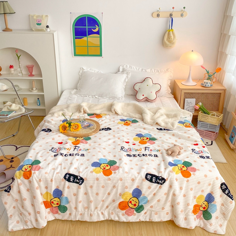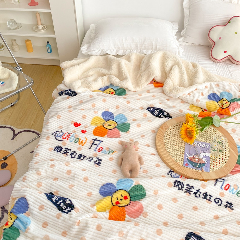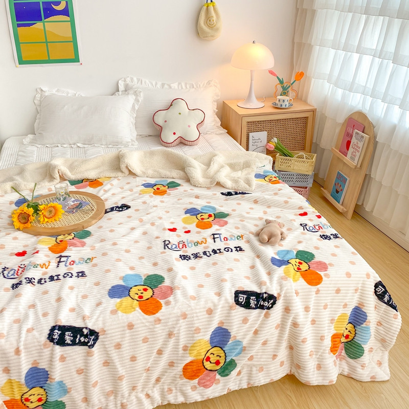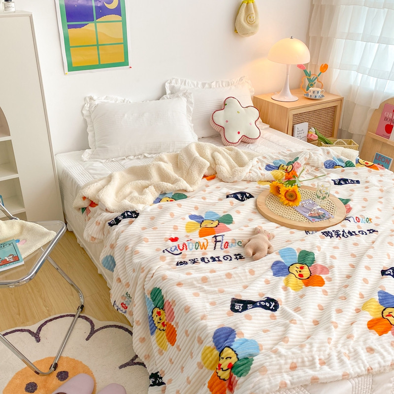 商品名称:顾里 新款ins网红少女心温暖牌魔法牛奶绒毛毯 七彩花