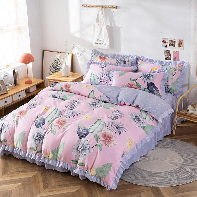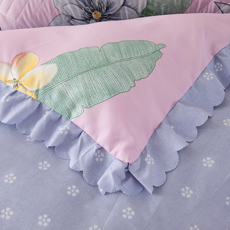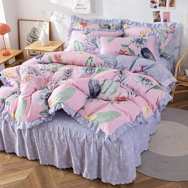 纽缦 2020新款加厚磨毛床裙款四件套 梦幻花田粉