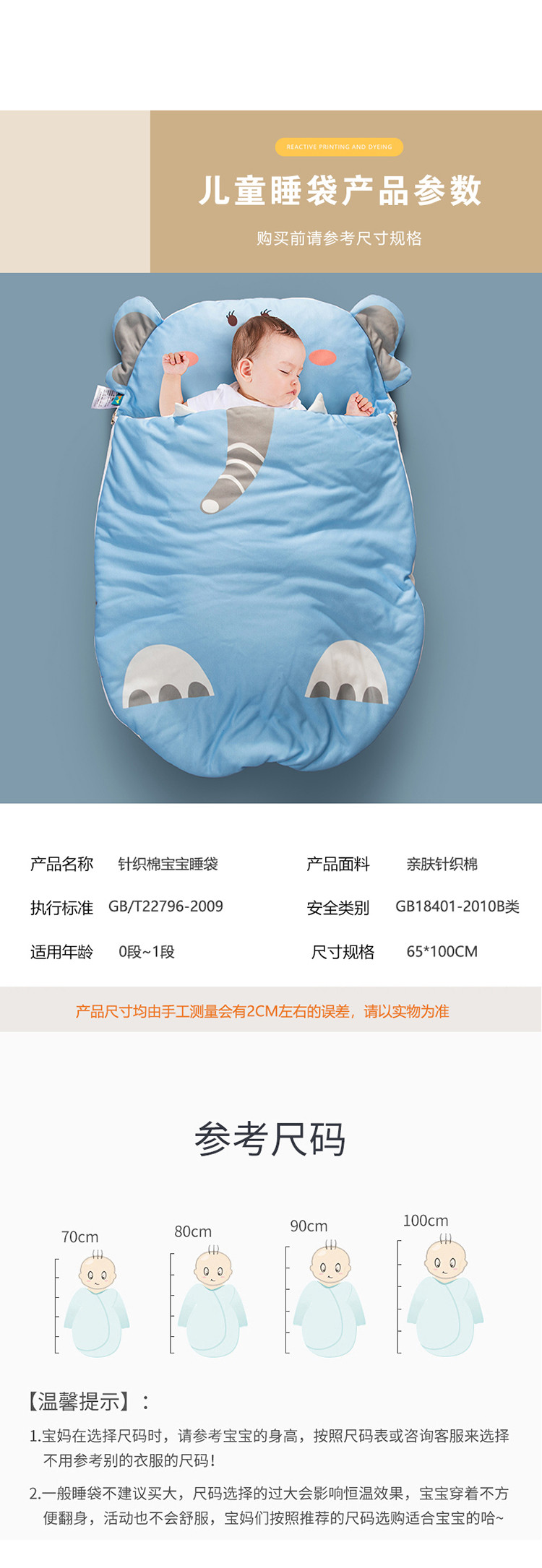 商品名称:小芽家居 2024新款亲肤针织棉宝宝睡袋 蓝大象