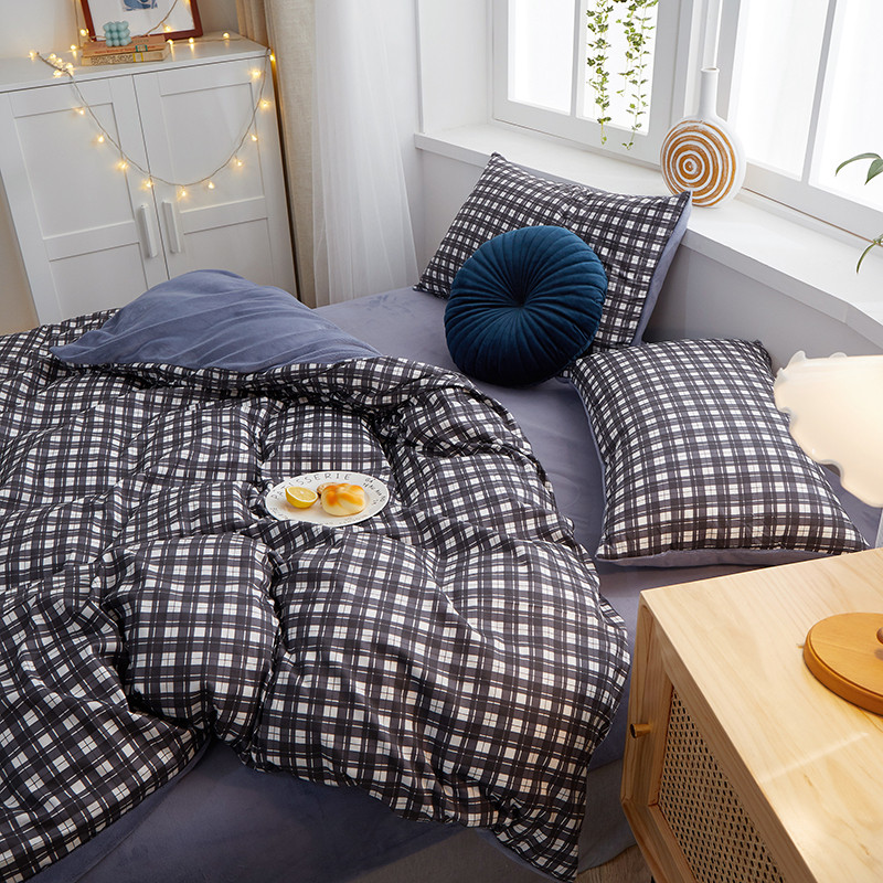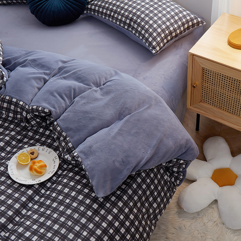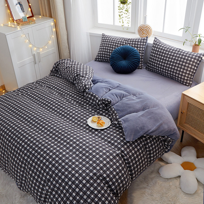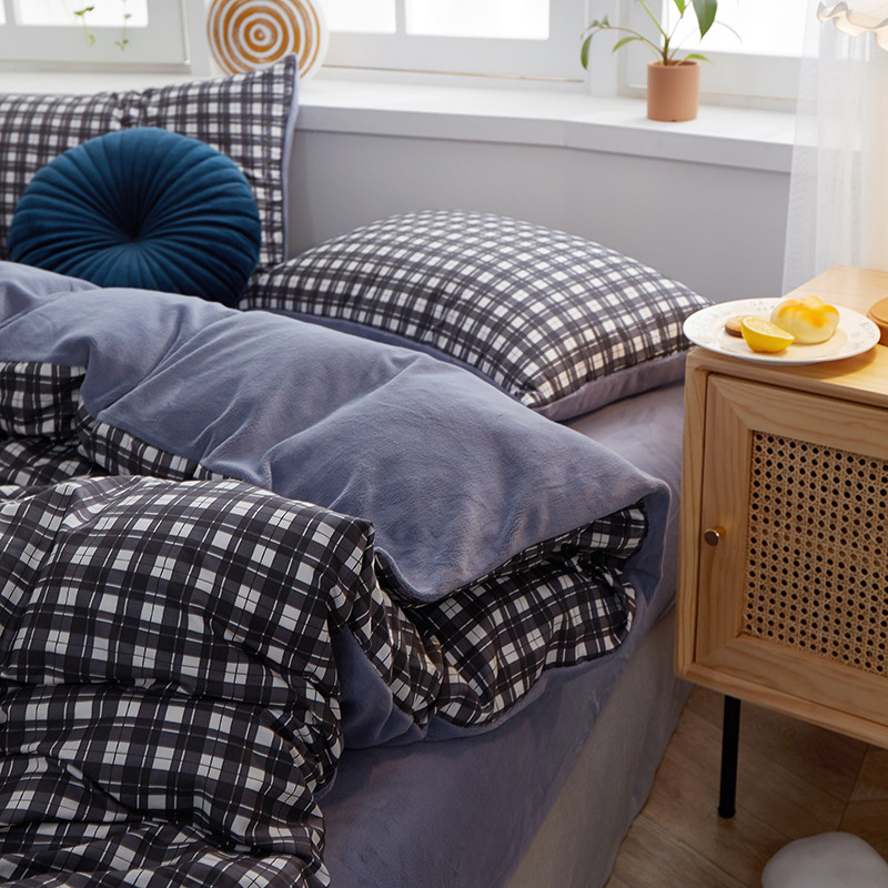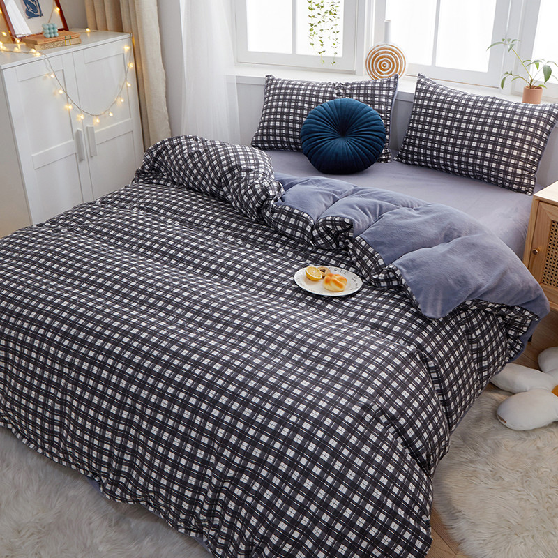 一米阳光 2020新款全棉加牛奶绒四件套 霸气黑牛奶棉绒