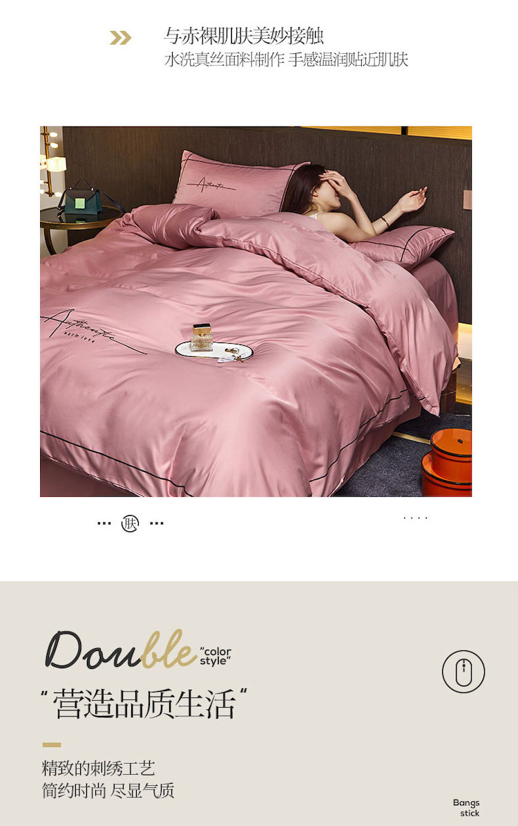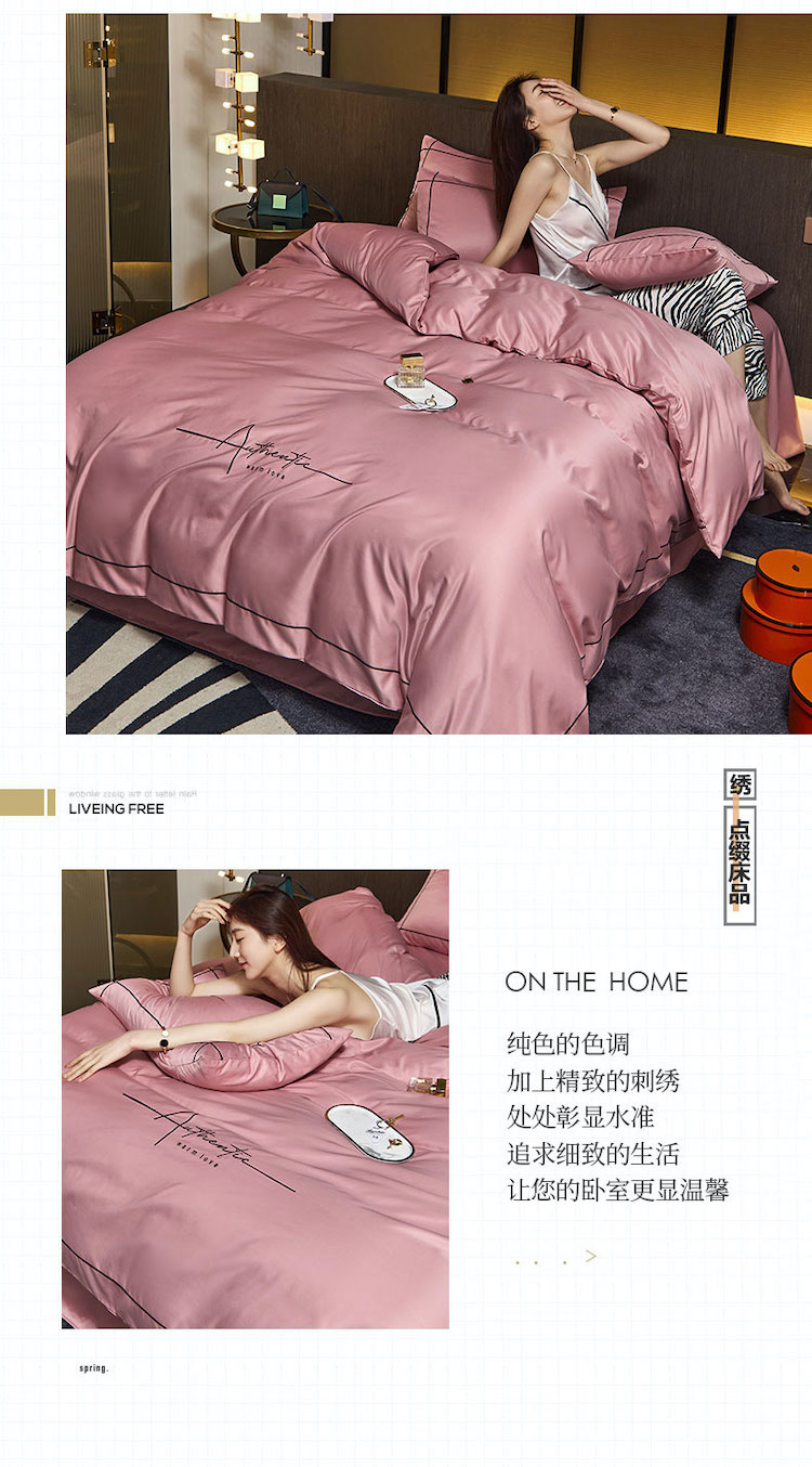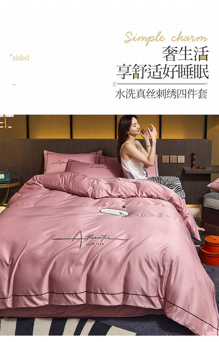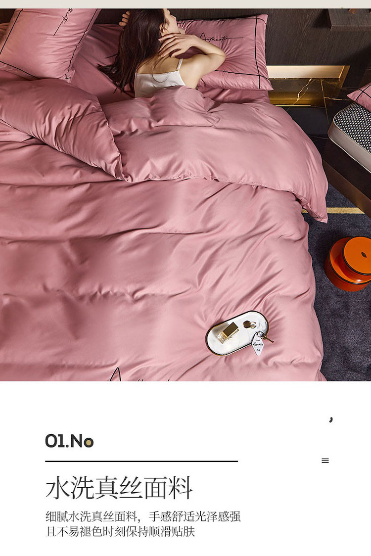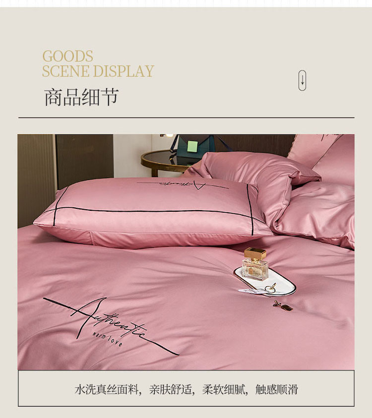 商品名称:凡客 2021春夏新款60支水洗真丝绣花四件套 圣卡罗-萝莉粉