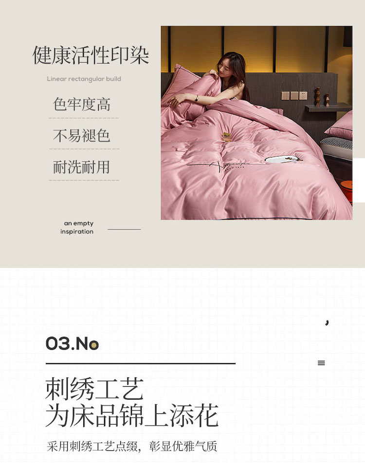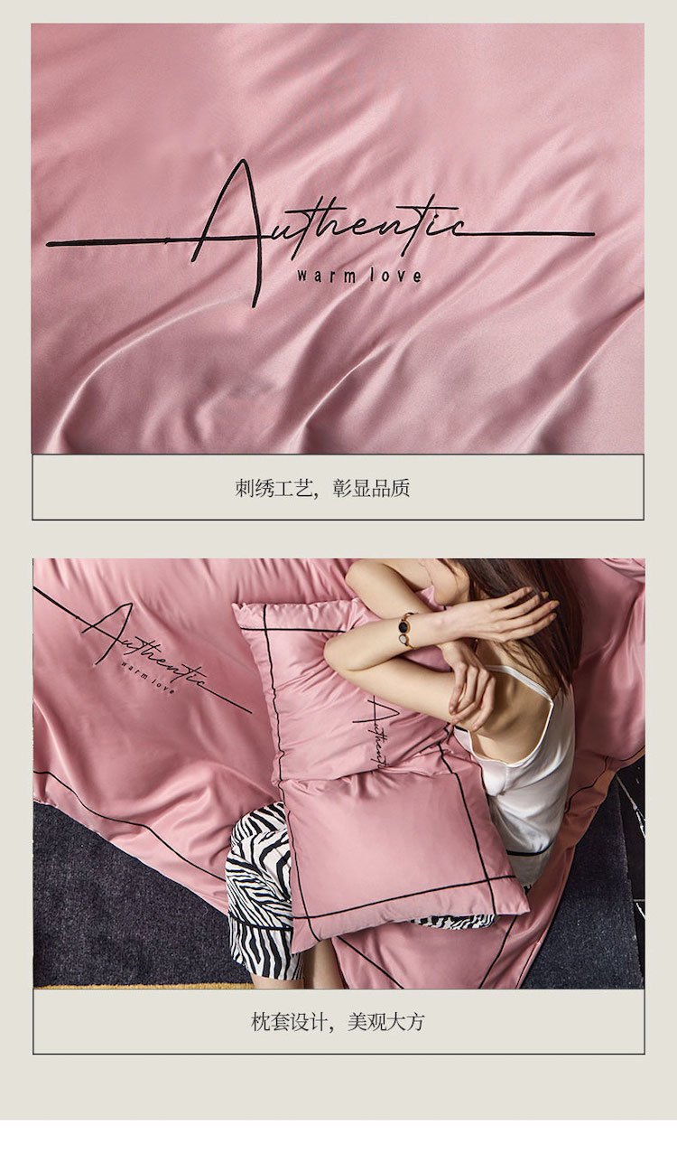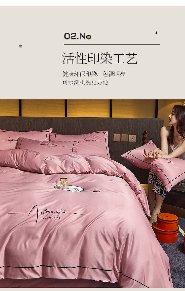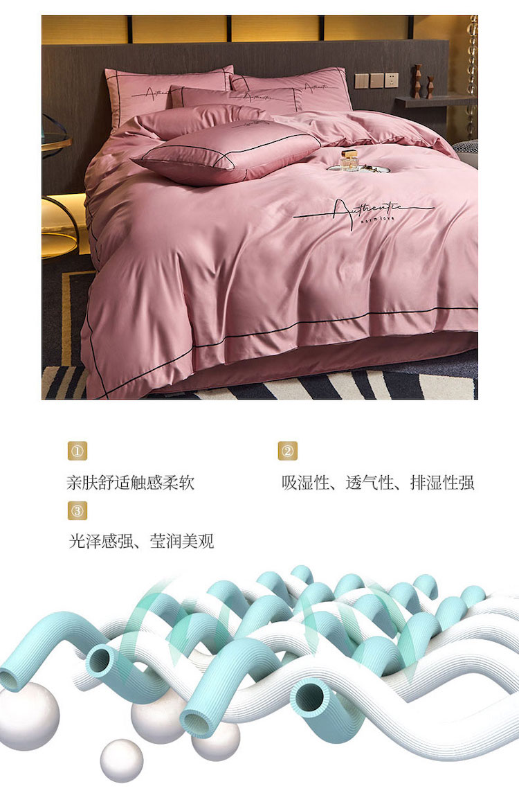 商品名称:凡客 2021春夏新款60支水洗真丝绣花四件套 圣卡罗-萝莉粉