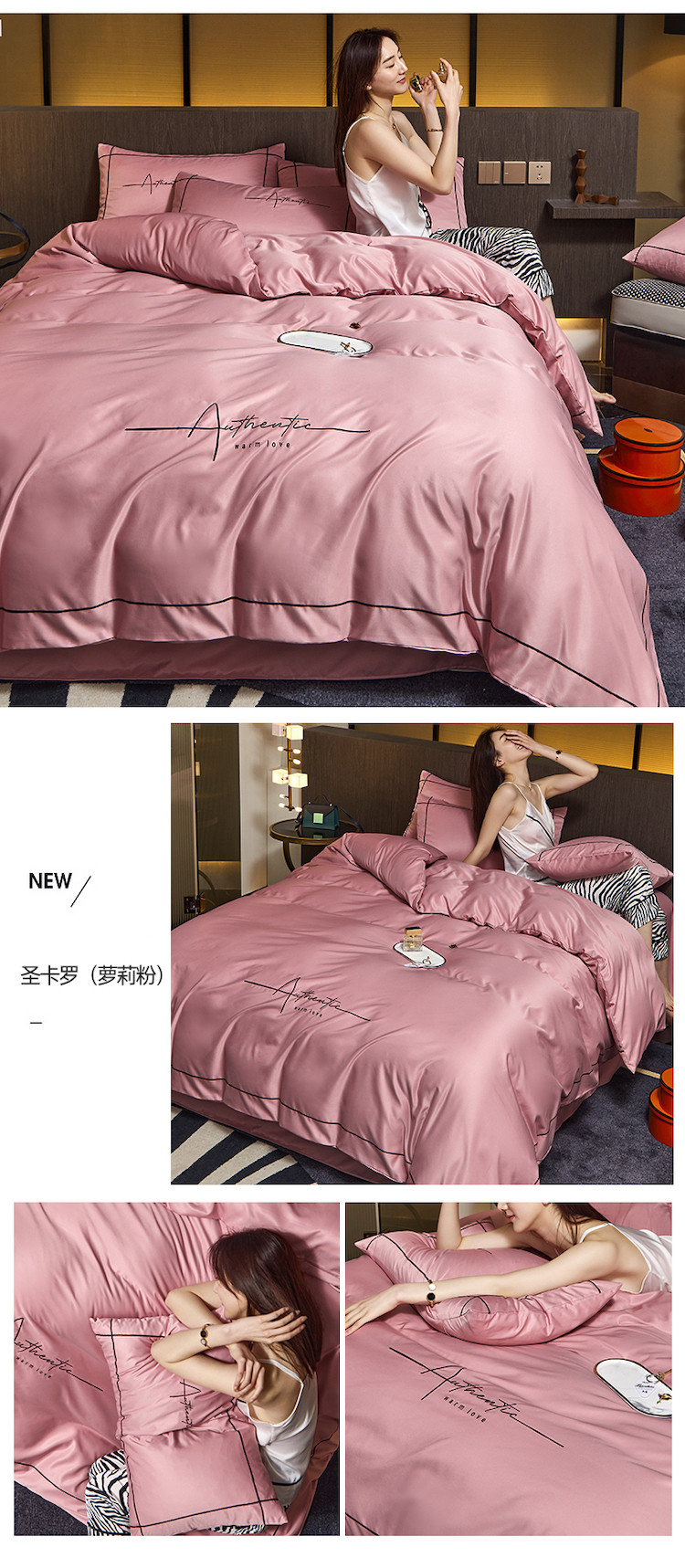 凡客 2021春夏新款60支水洗真丝绣花四件套 圣卡罗-萝莉粉