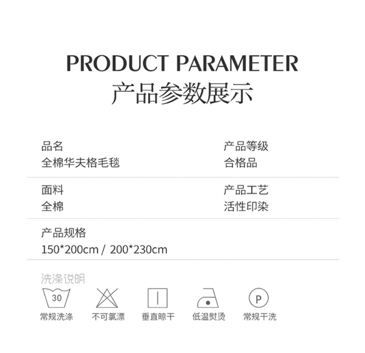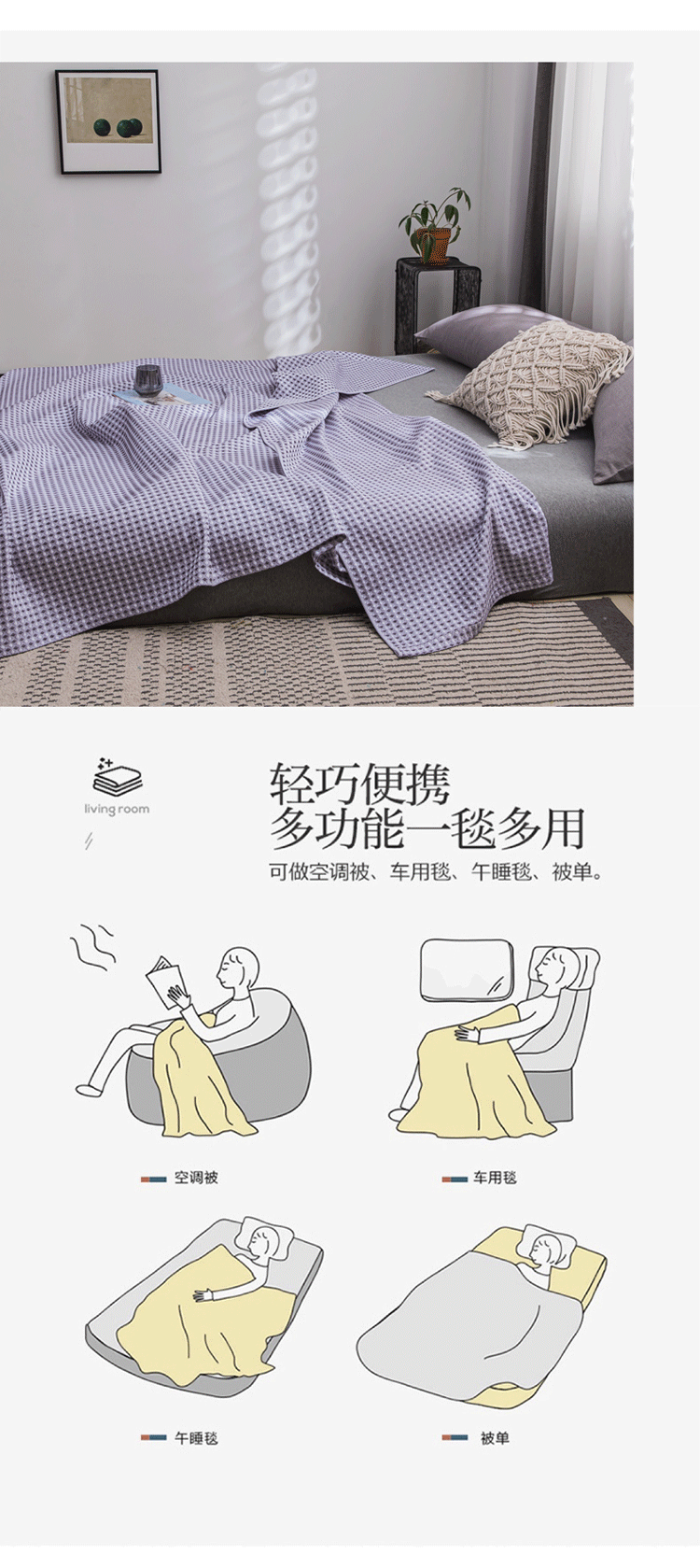 商品名称:(总)朴尔 2021新款华夫格全棉纱布线毯毛巾被