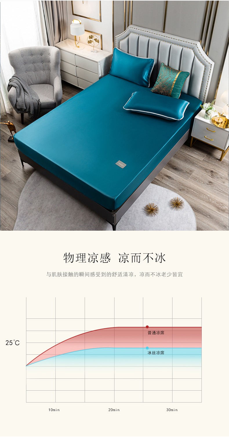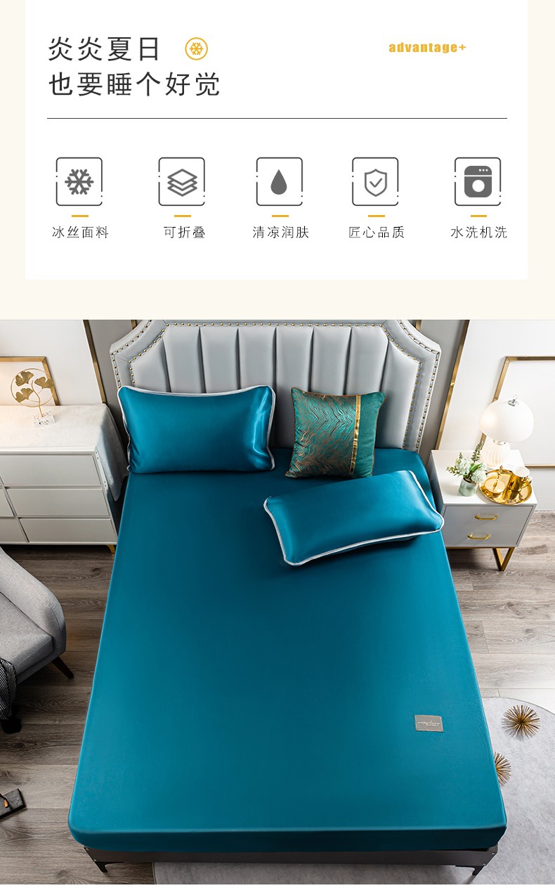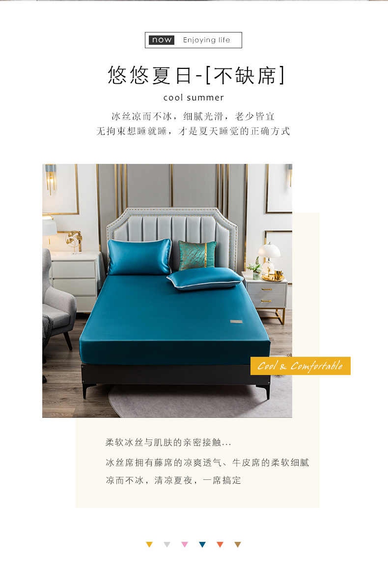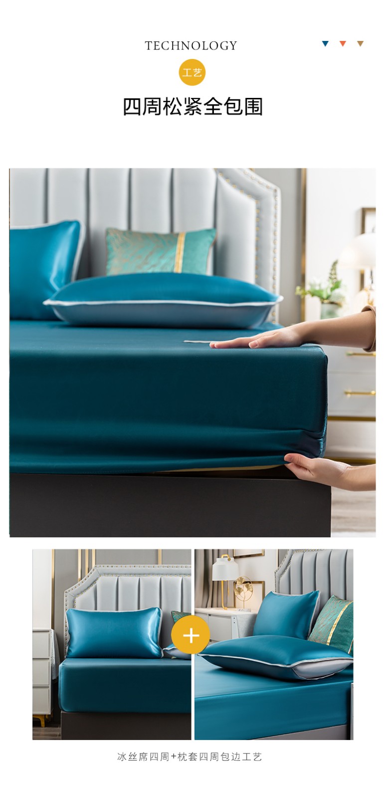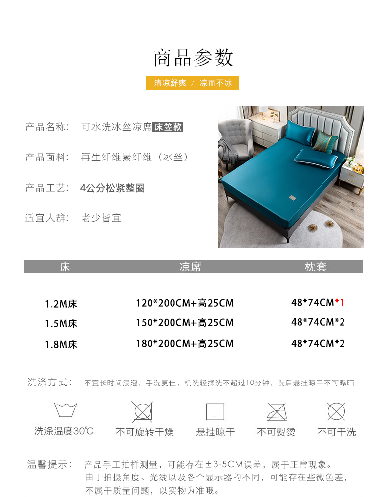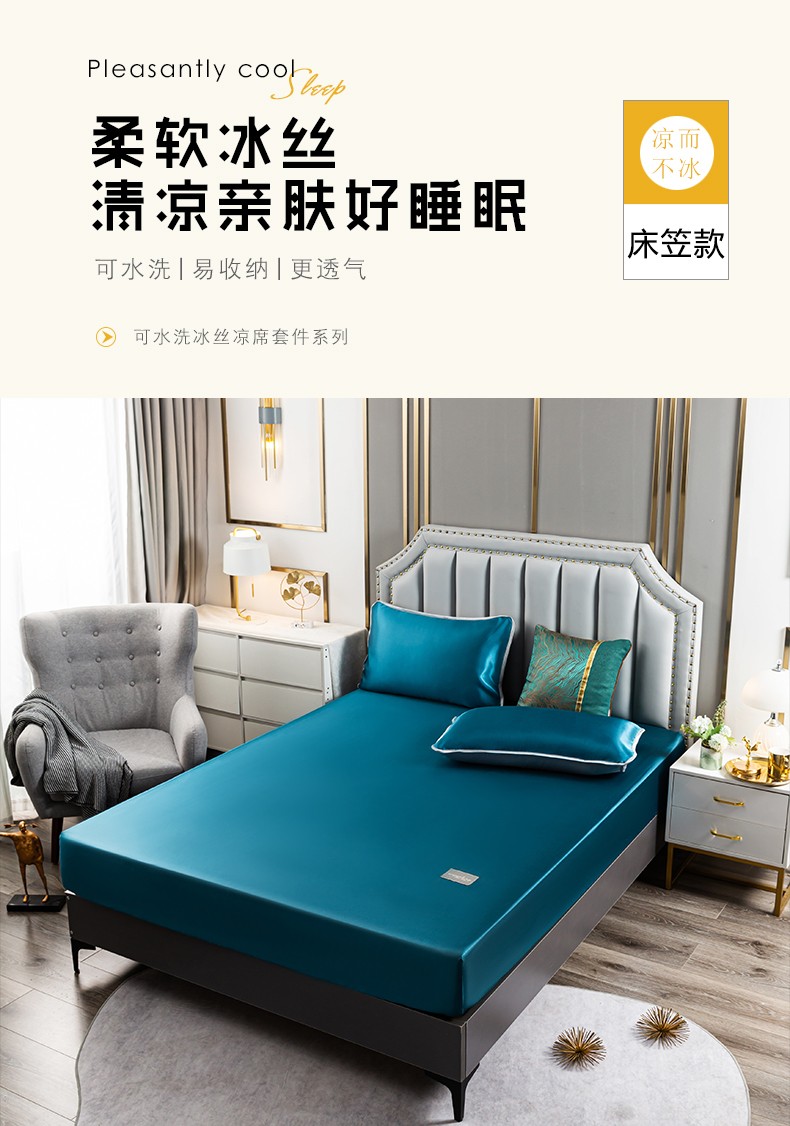 商品名称:总-潮邦 可水洗床笠款冰丝凉席1.21.51.8米席子三件套