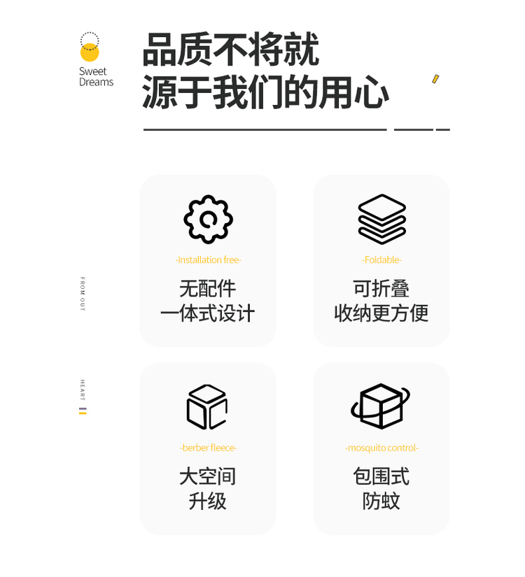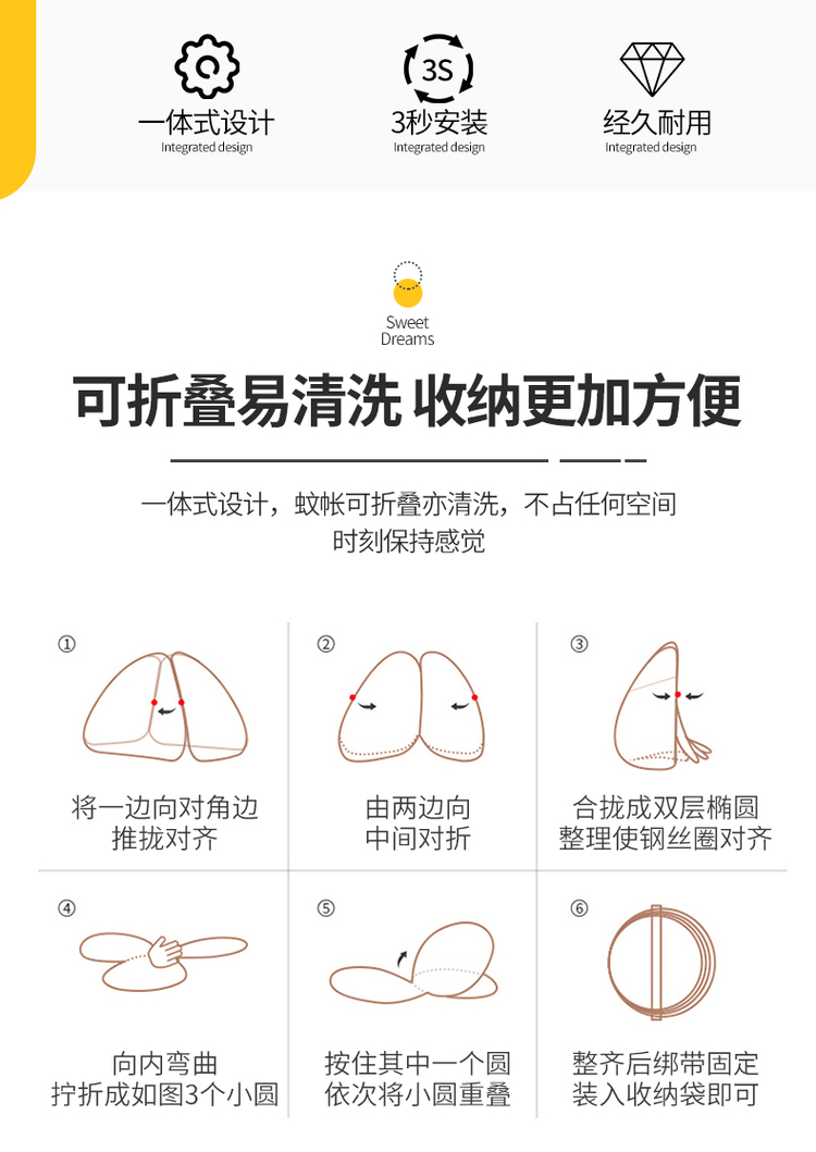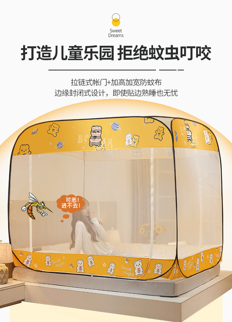 商品名称:卓尔居 2022年新款大顶免安装全底床笠款蚊帐 小熊-黄
