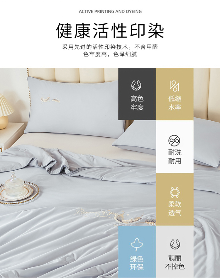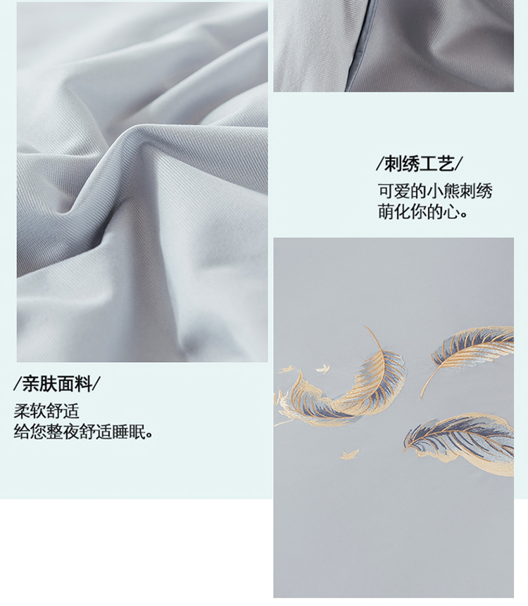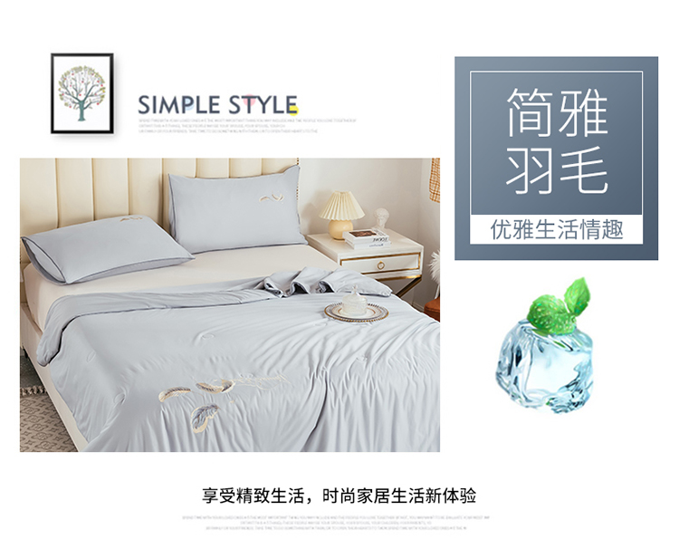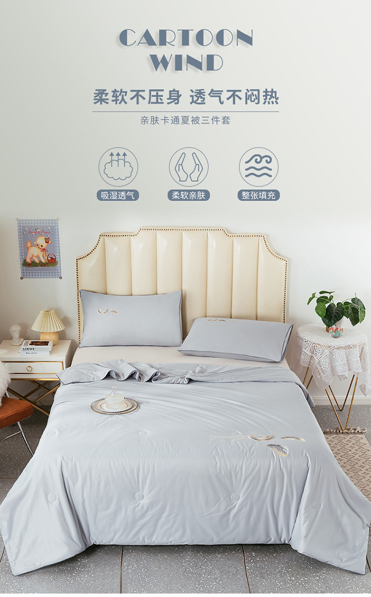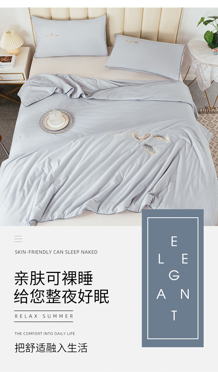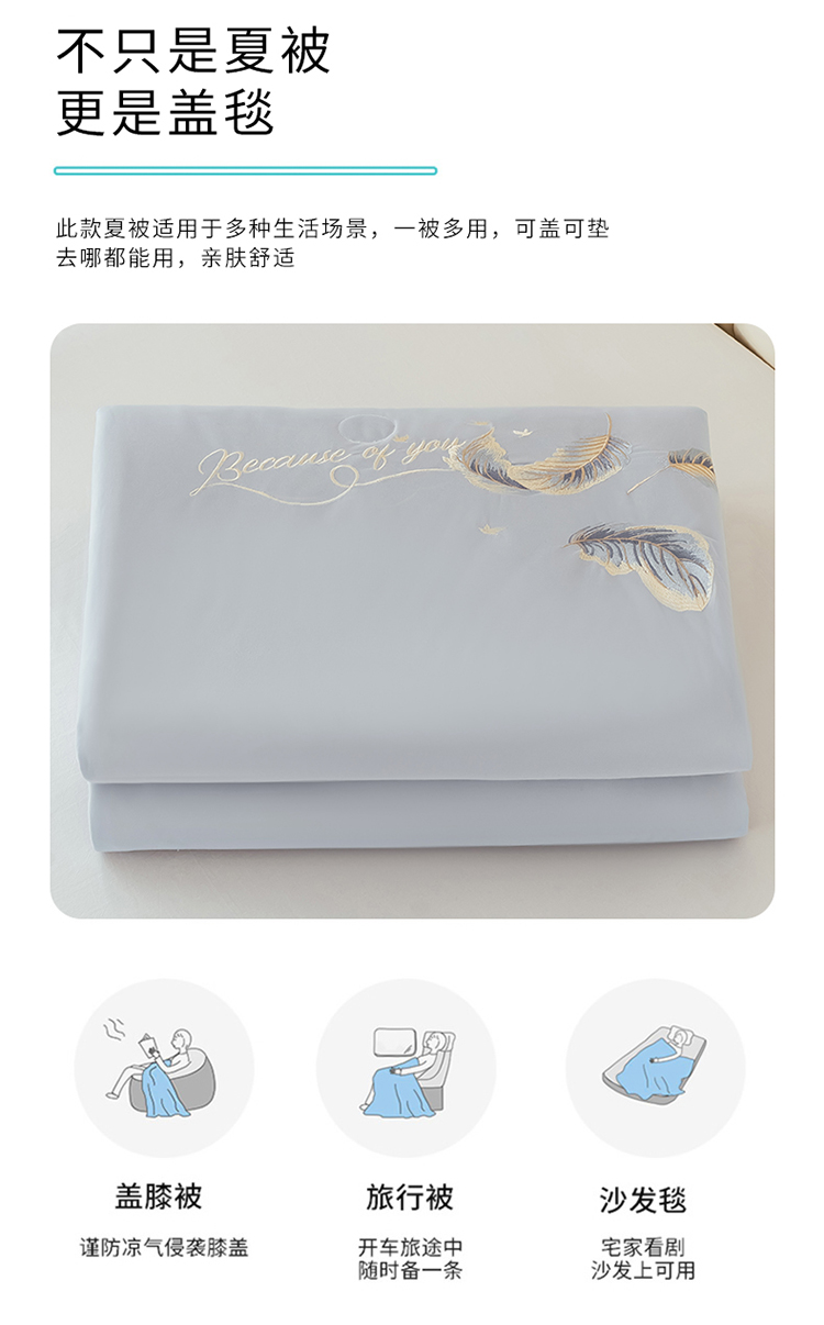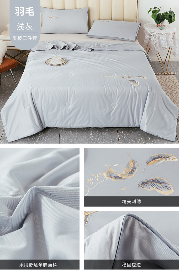 商品名称:芃成家纺 2021新款针织棉绣花夏被 羽毛浅灰
