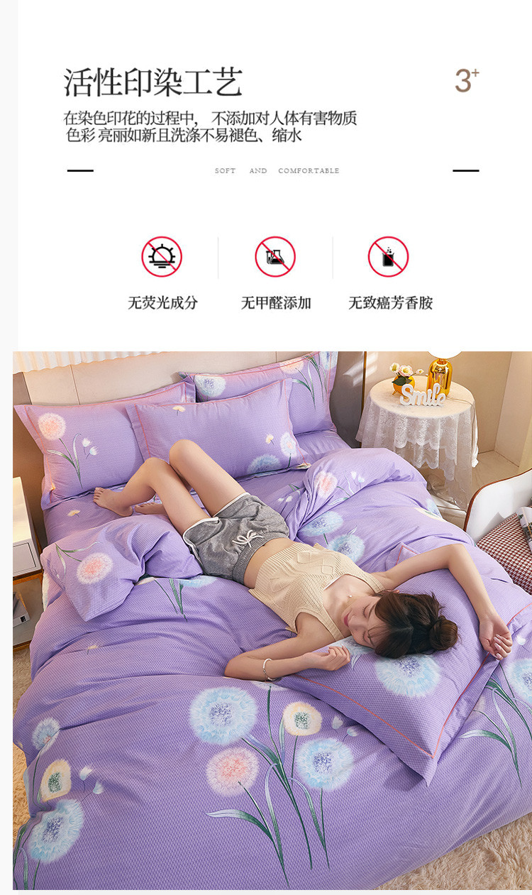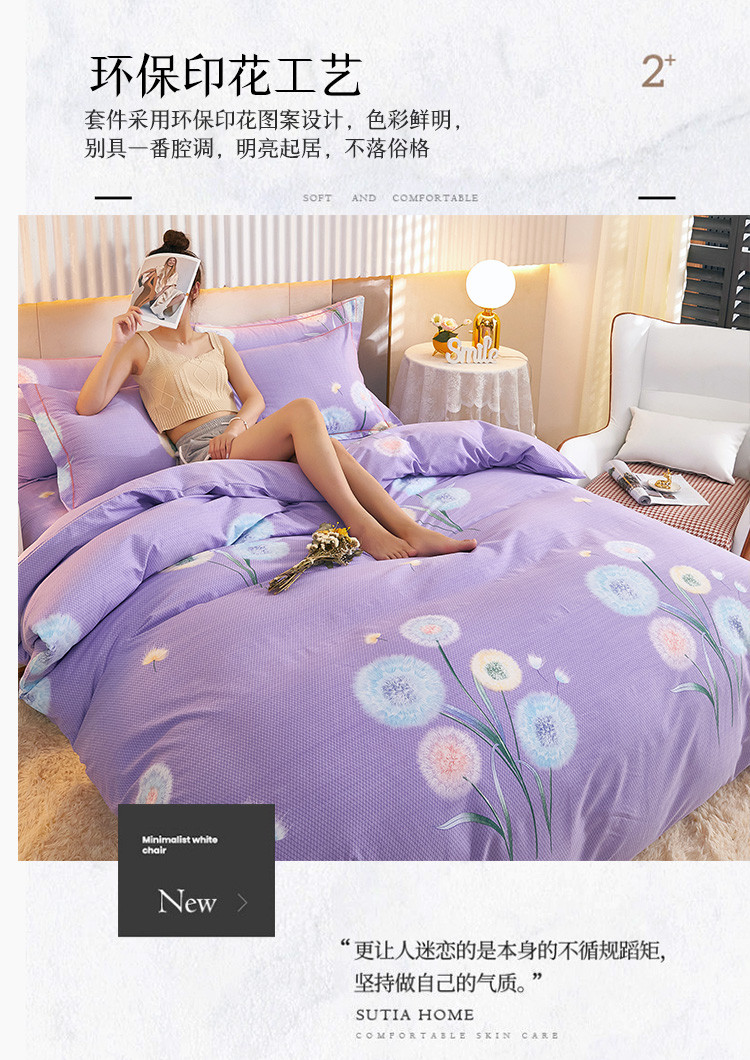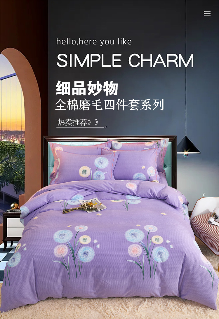 商品名称:雲归梦2021新款多规格全棉加厚生态磨毛四件套 蒲英之恋