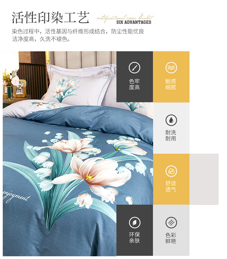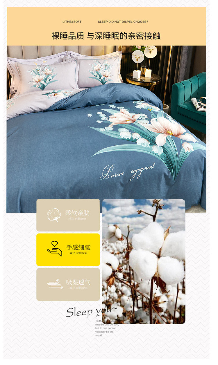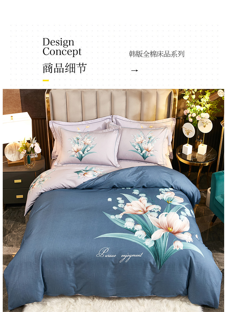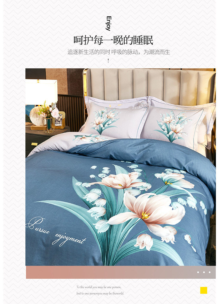 商品名称:雲归梦2021全棉大版生态磨毛四件套花卉花型第1批花影寻香兰