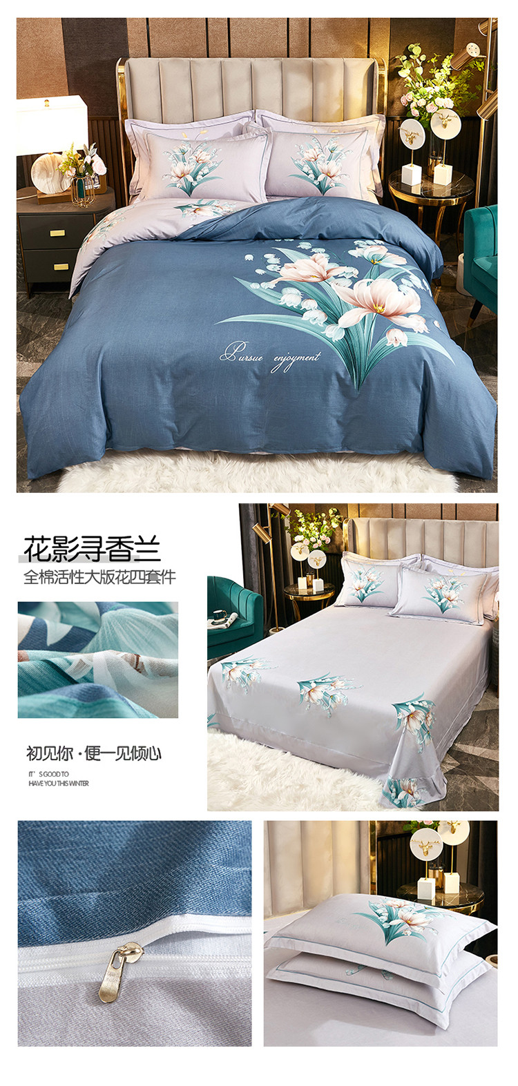 雲归梦2021全棉大版生态磨毛四件套花卉花型第1批花影寻香兰