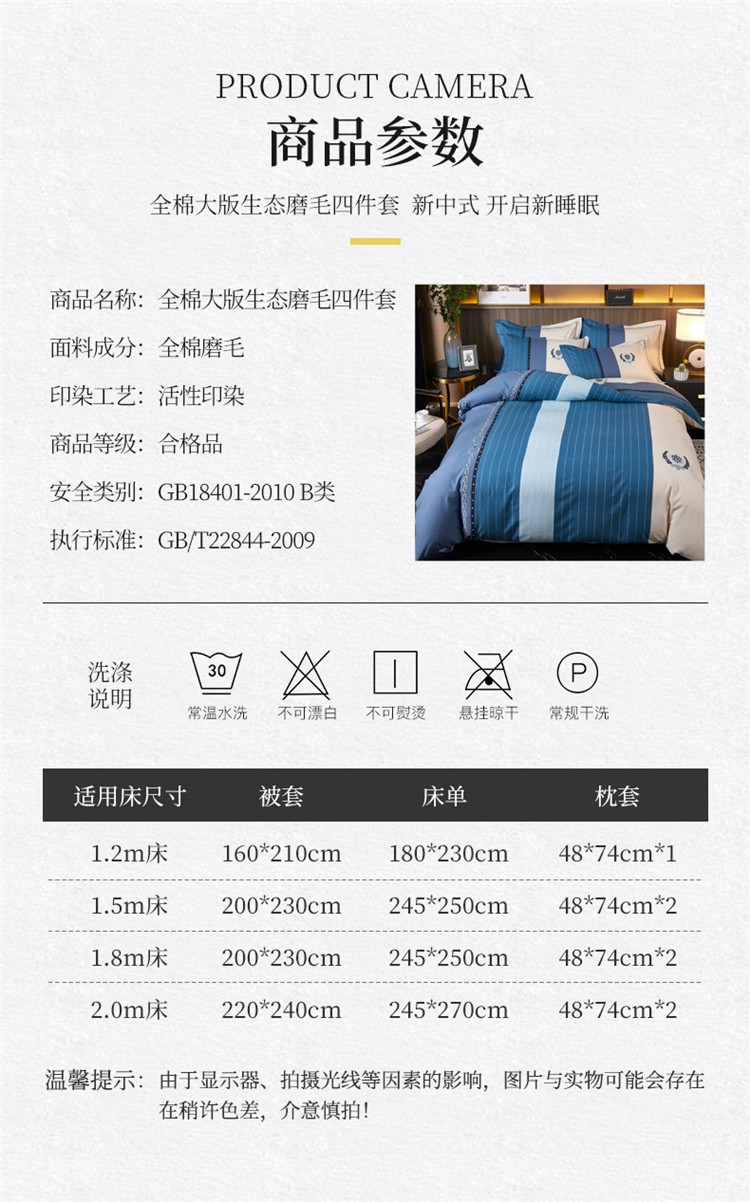 商品名称:芊寻家居 2024新款全棉大版磨毛四件套 卡菲尔