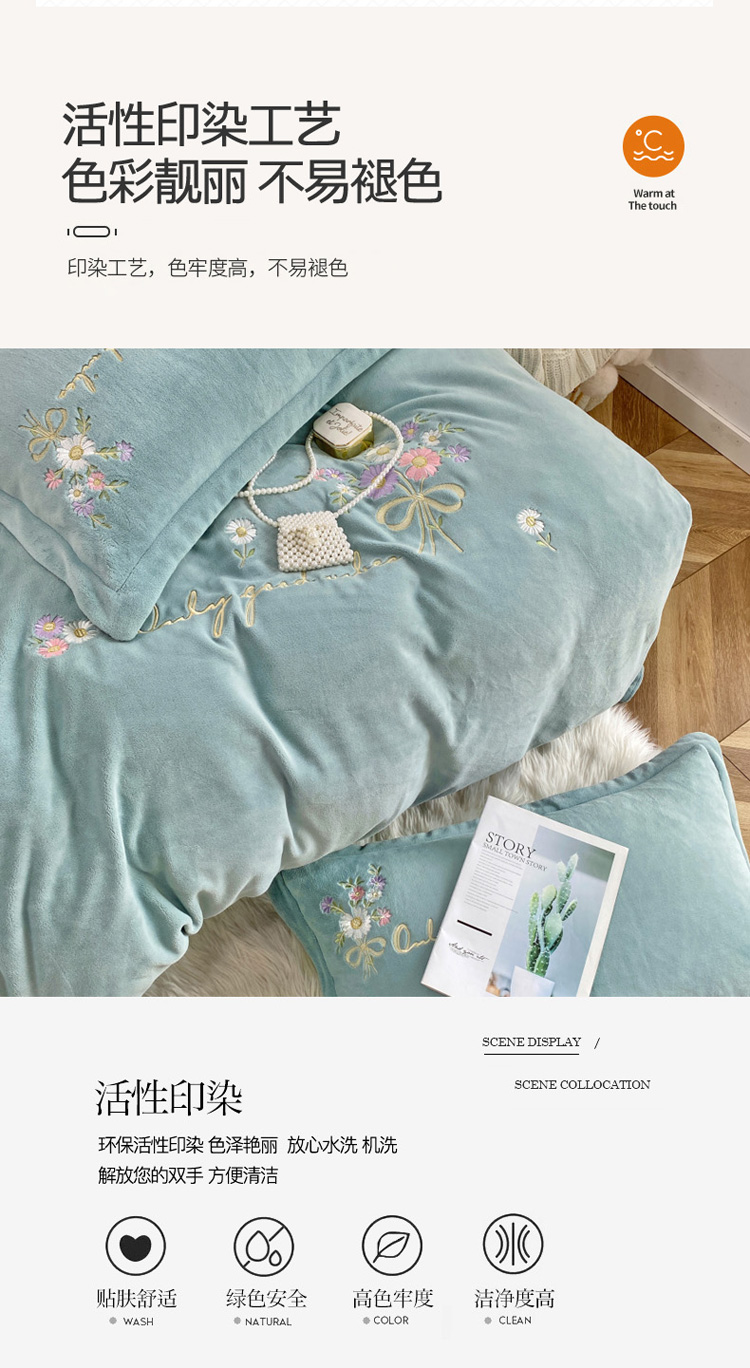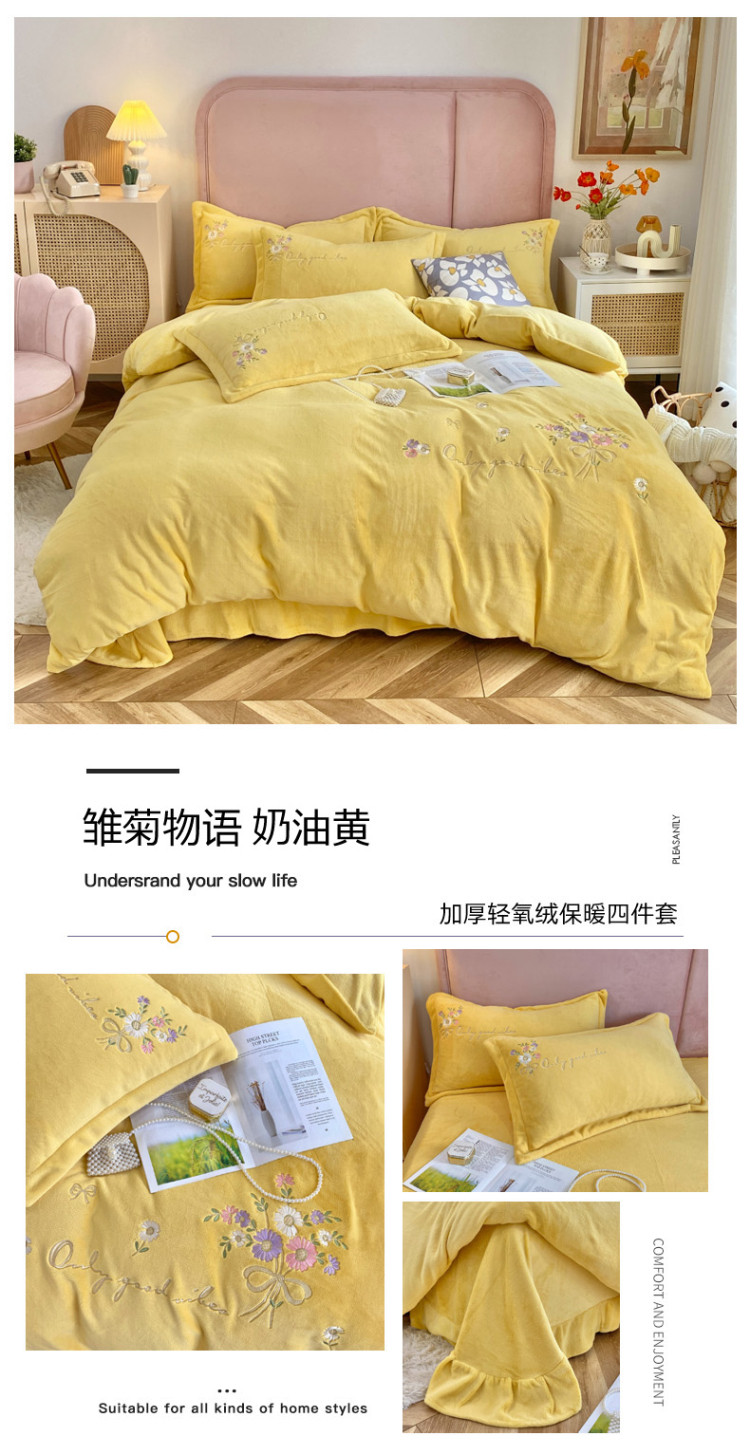 (总)星尚家纺 2021新款轻氧牛奶绒绣花四件套雏菊物语系列