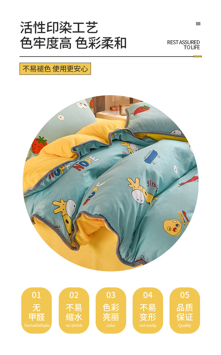 琪琪阁 2023新款A棉B绒棉加绒牛奶绒四件套单被套 快乐伙伴,快乐伙伴