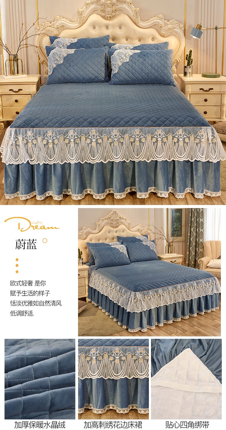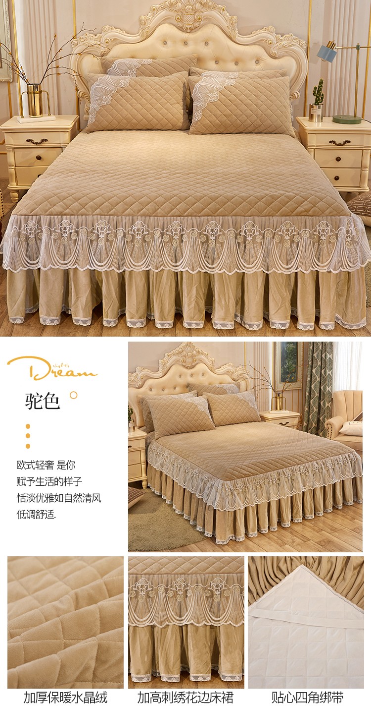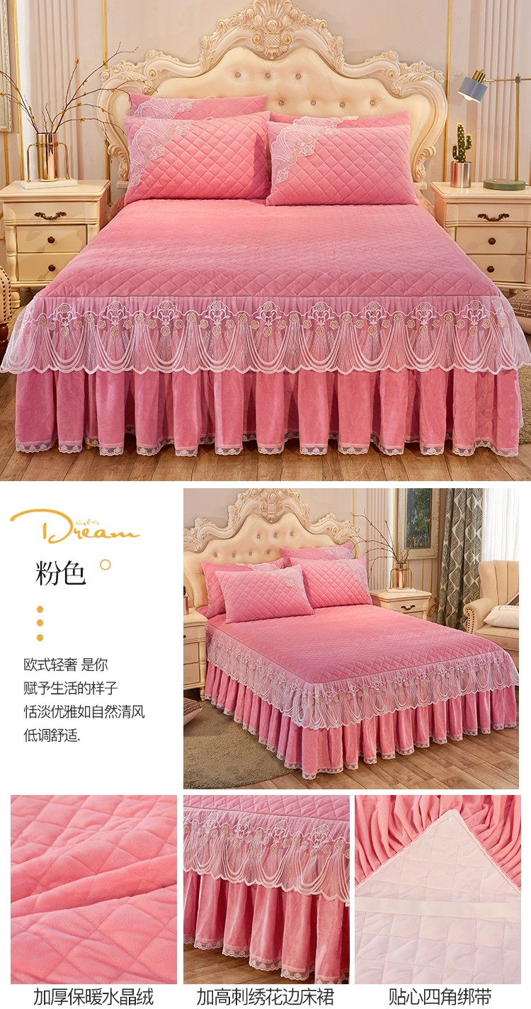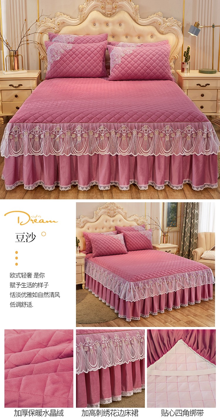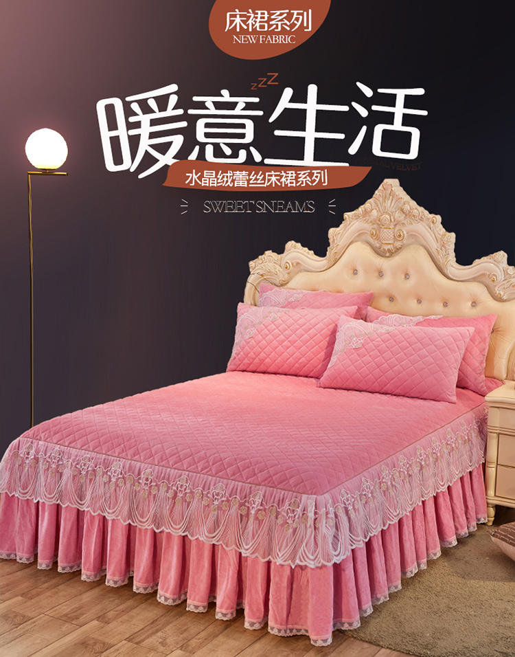 (总)网红馆 2025新款幸福花开水晶绒蕾丝单品床裙被套枕套