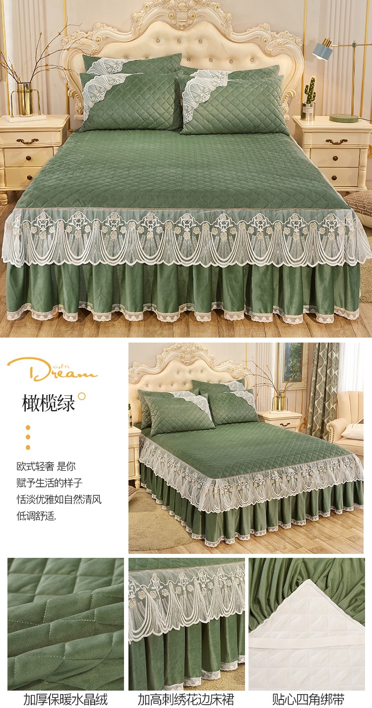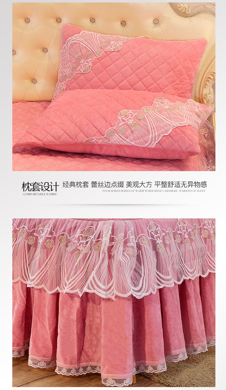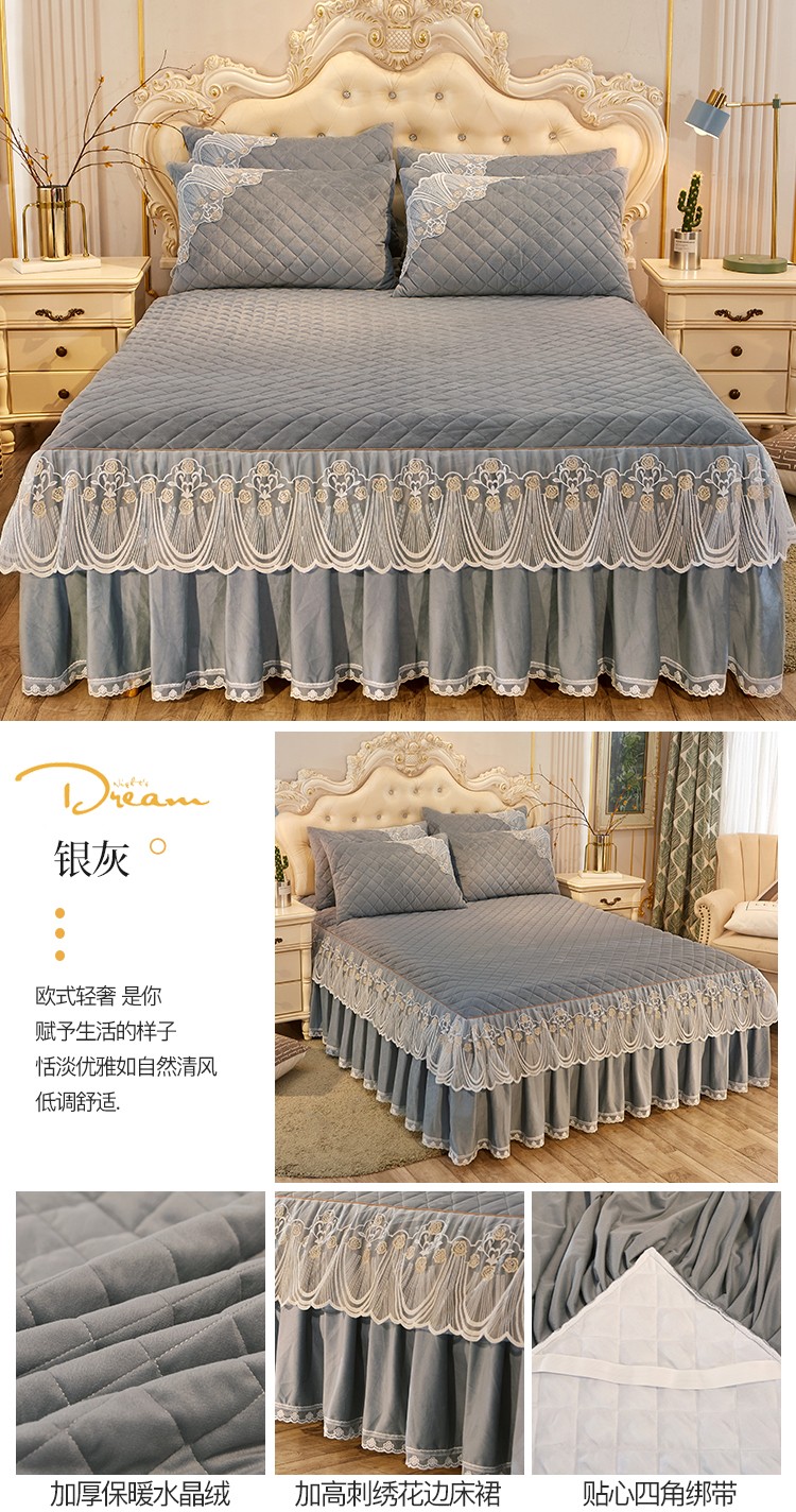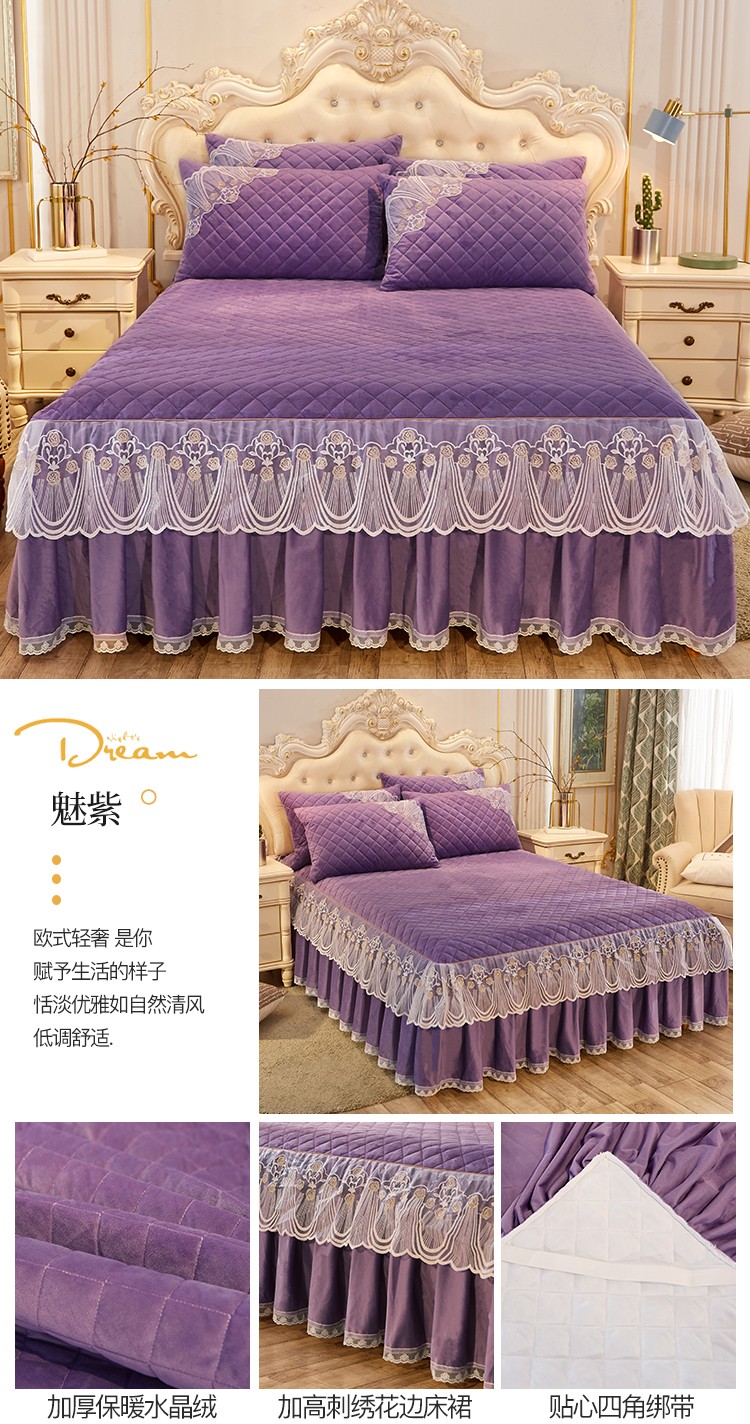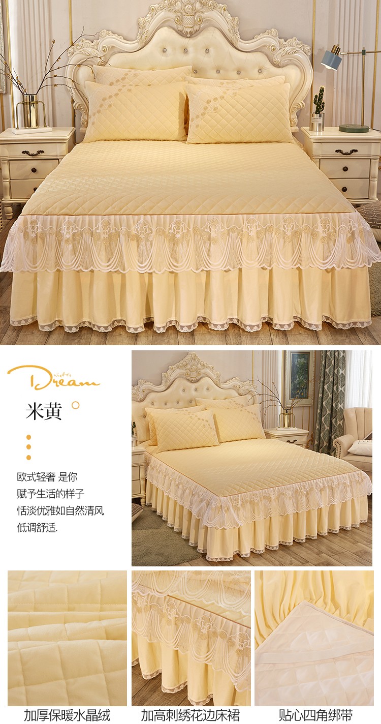 (总)网红馆 2025新款幸福花开水晶绒蕾丝单品床裙被套枕套